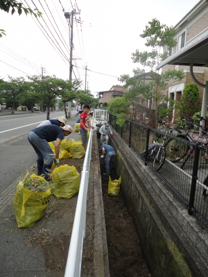 ごみゼロ運動お疲れ様でした。側溝の清掃では、お父さん達に頑張っていただきました。