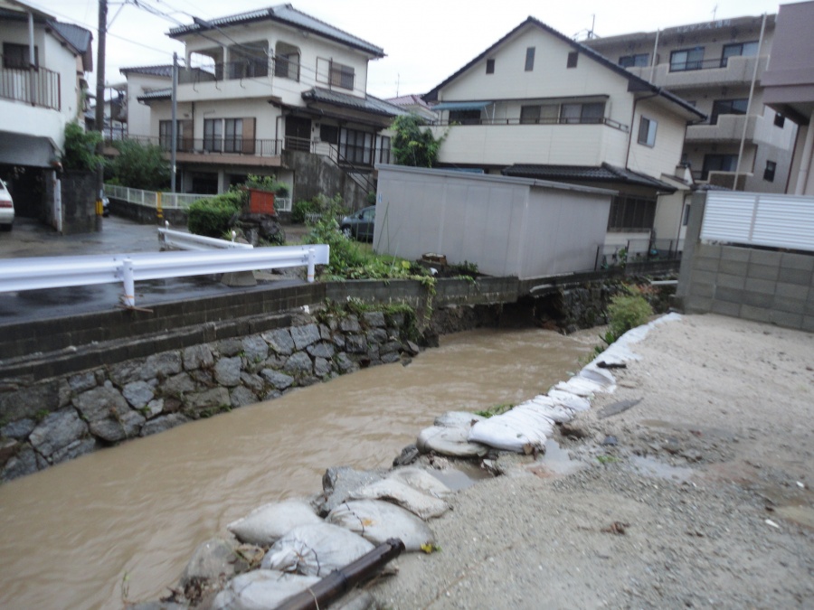 8月22日早朝よりの豪雨で筑紫野市に避難勧告が発令され、公民館に避難所を開設しました。湯町では道路の冠水や鷺田川の護岸が一部決壊しました。今後も気象情報や防災情報に注意してください。避難する場合は、周囲の状況等に注意して安全に避難してください。尚、午前11時10分に避難勧告が解除されました。