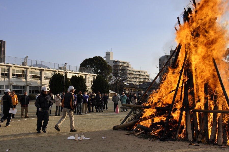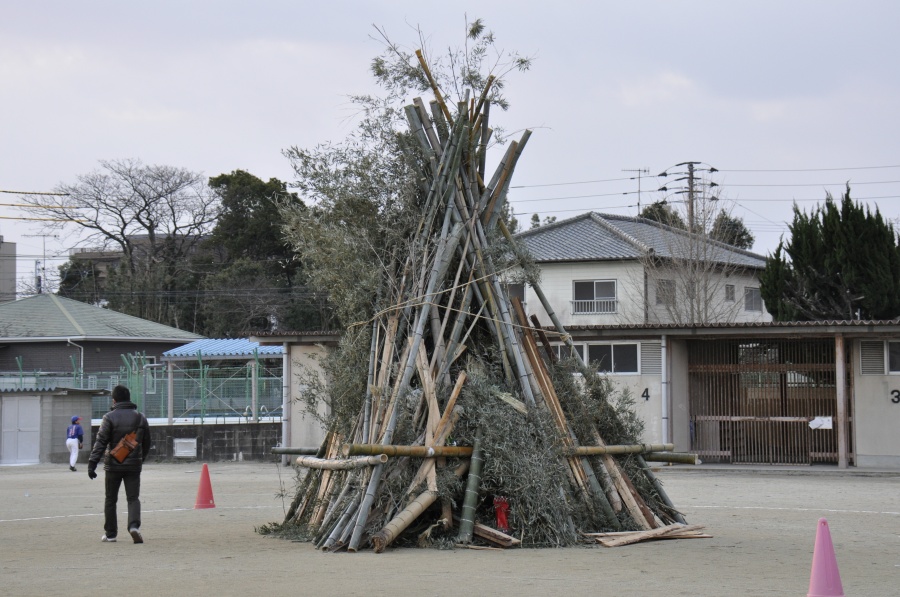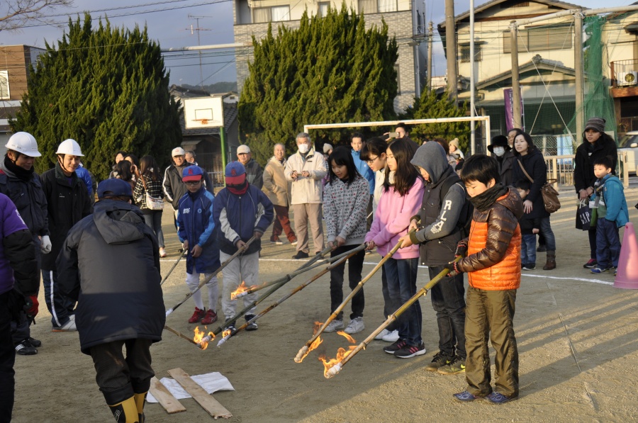 1月12日(祝)に二日市小学校の校庭でどんど焼きをしました。