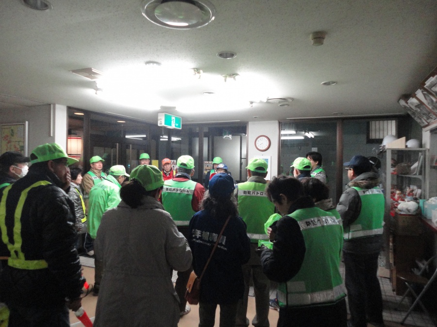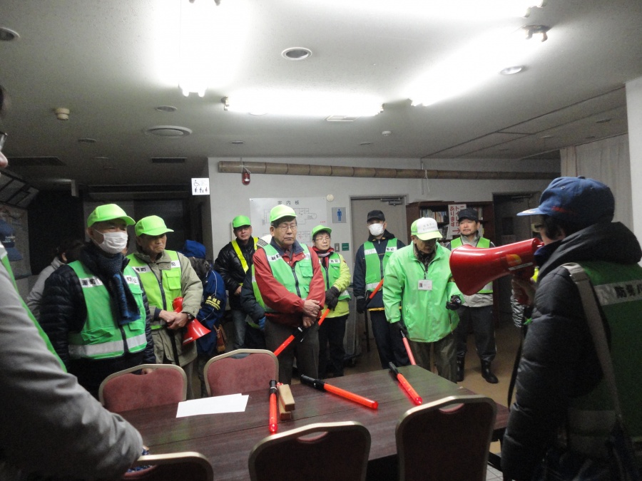 2月27日に二日市コミュニティによる『一斉パトロール』が行われました。市役所前で出発式があり、各地区ごとに一斉にパトロールを行いました。