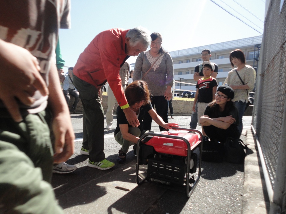 また、公民館消防訓練後、防災・防犯備品の点検・整備を行いました。発電機の正しい使い方もみんなで学習しました。