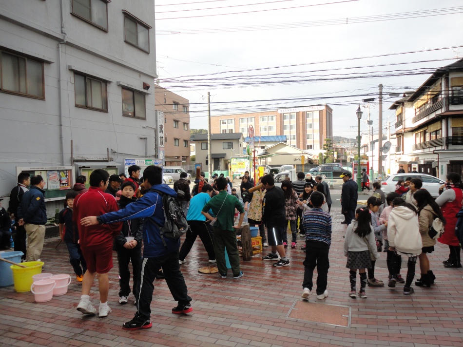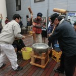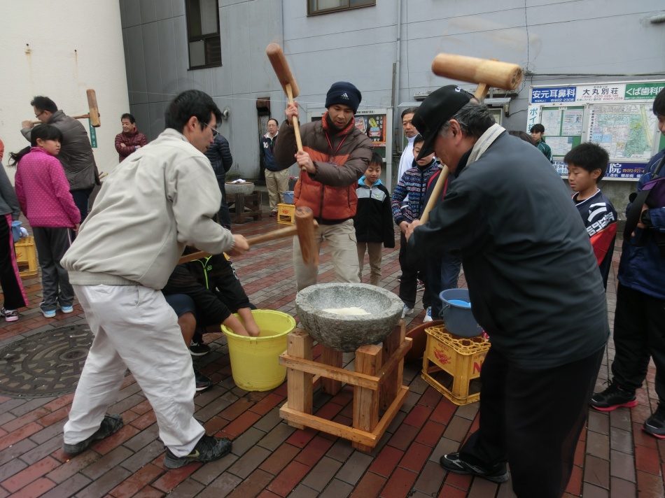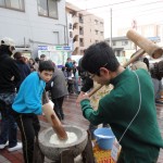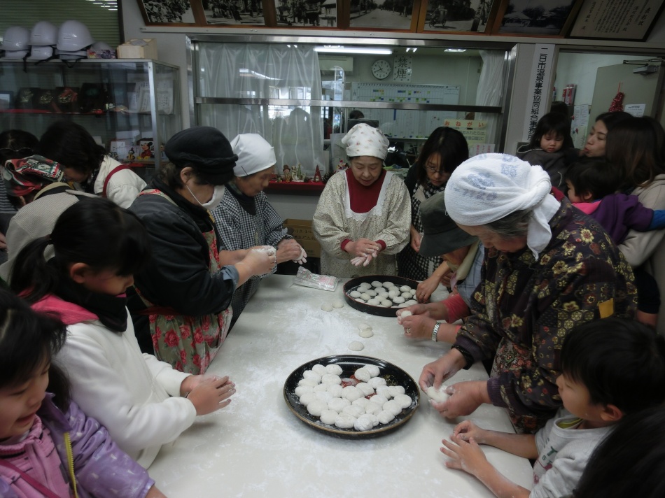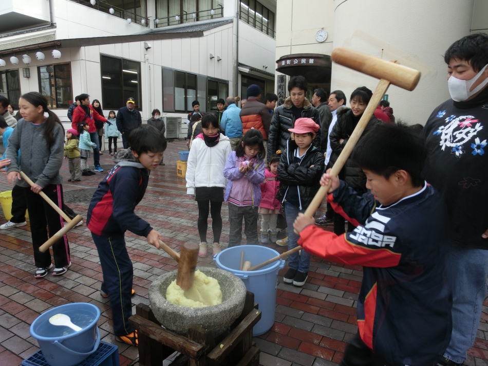 町内のたくさんの方が集まり、お餅をついてきな粉餅やぜんざい・おろし餅などを食べました。また75歳以上の一人暮らしの方に子ども会と福祉委員・民生委員さんがお餅をプレゼントに行きました。