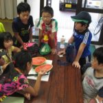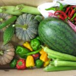 かぼちゃ・オクラ・ピーマン・なす等を収穫。みんなでとりたてのスイカを食べました。チョー美味しかった!