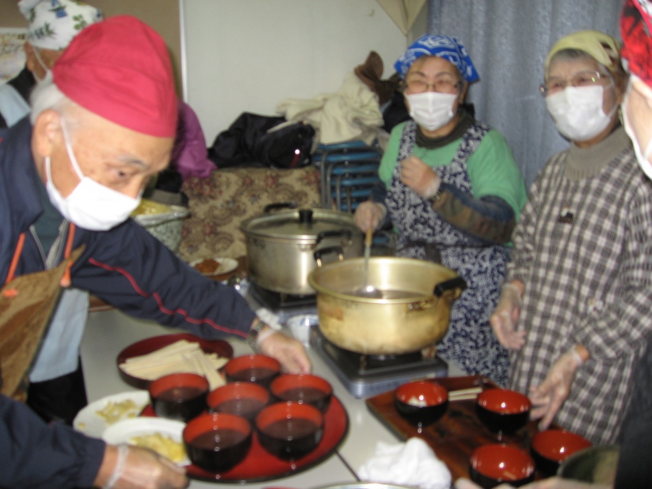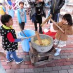 たくさんの参加があり、ぜんざいやおろし餅、きな粉餅をおいしくいただきました。75歳以上の一人暮らしの方にも役員と子ども会のみなさんでお餅をプレゼントに行きました。