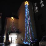 湯町公民館の玄関前に育成会のみなさんで、イルミネーションを設置しました。