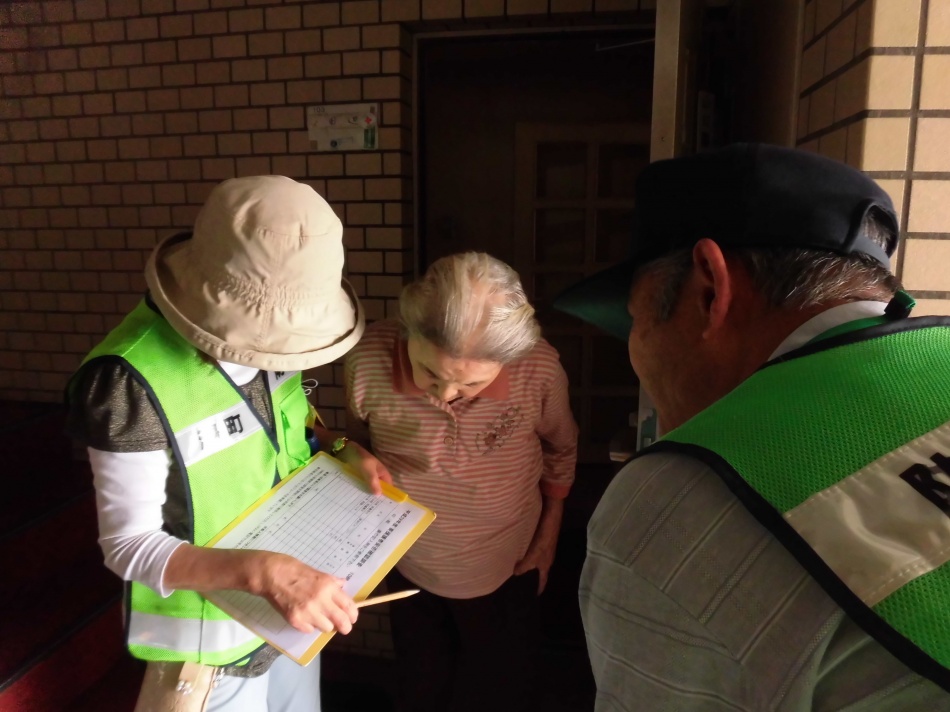 災害が発生したと想定して午前10時より一斉に新旧隣組長さん・民生委員・福祉委員・防災防犯委員により要援護者(昨年度の75才以上の敬老対象者)の安否確認調査訓練を行いました。