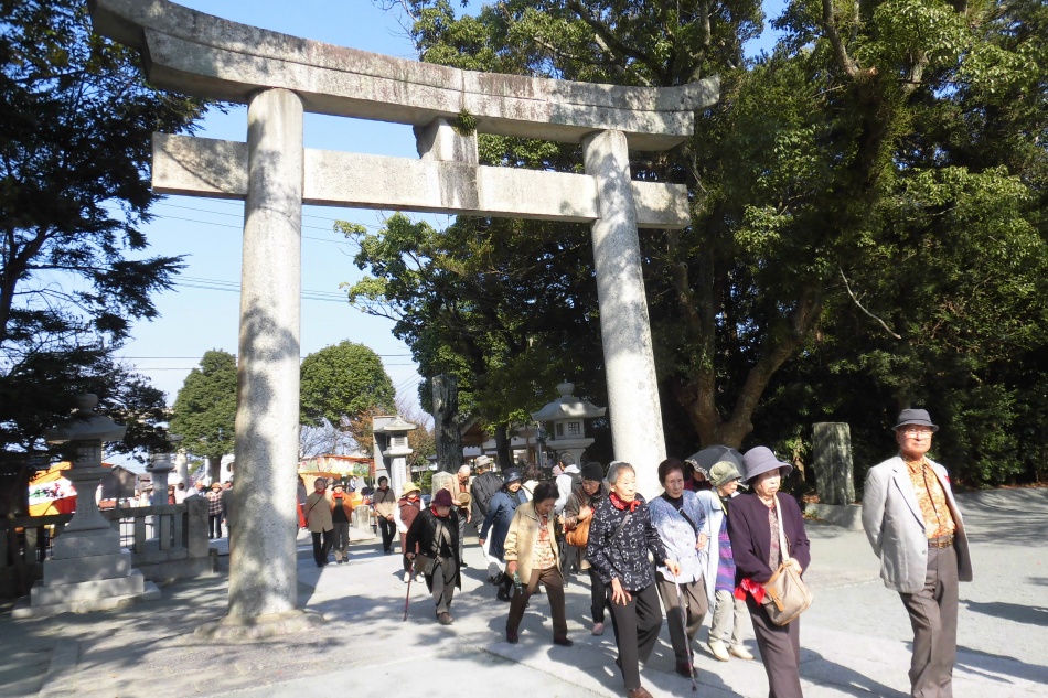 『宗像大社』を参拝し宗像神宝館を見学しました。ひびき荘でおいしい昼食を頂いて、『あんずの里』を散策しました。