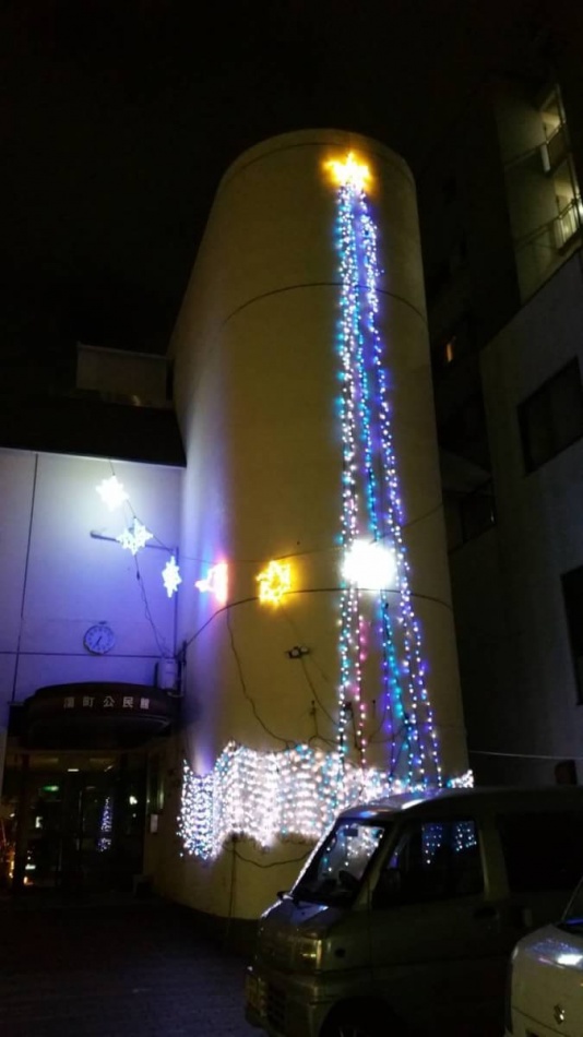 年末に公民館にイルミネーションをつけました。見られましたか?