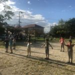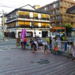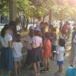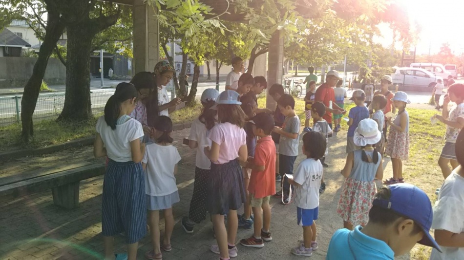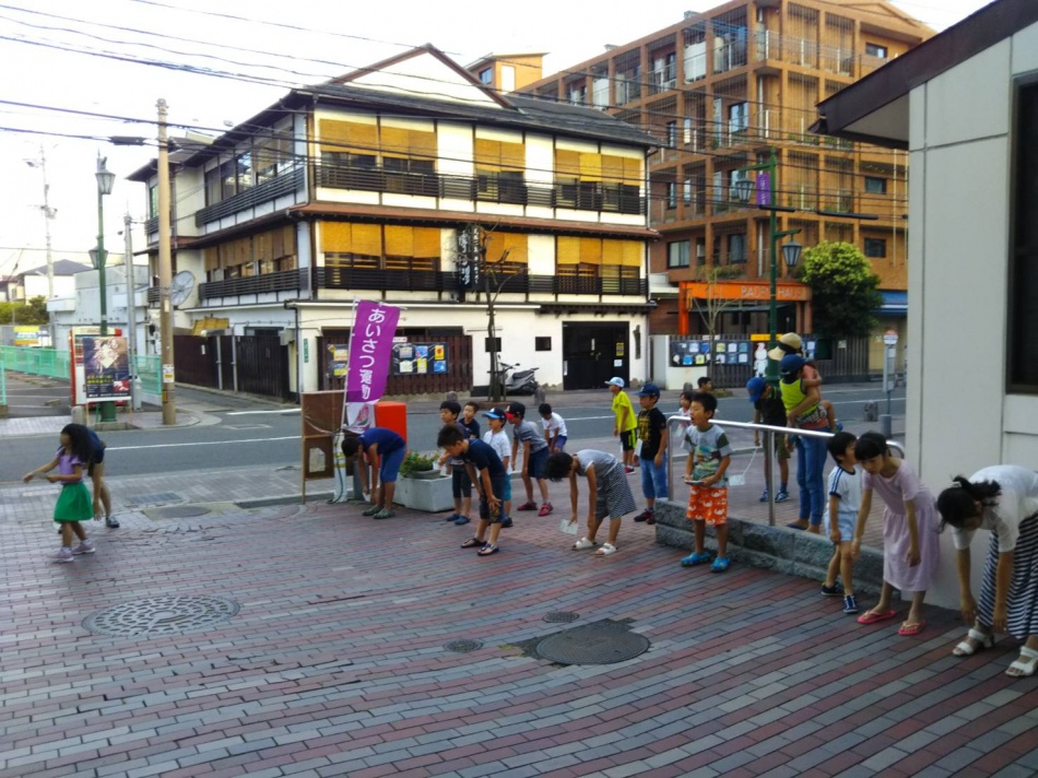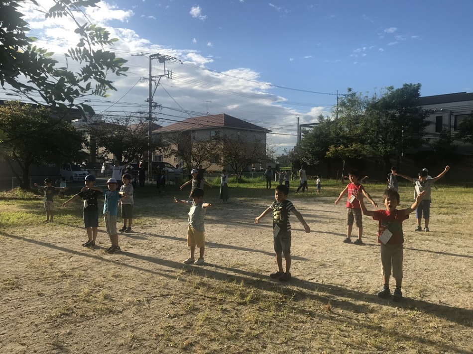 湯町公民館前と天拝通り公園で眠い目をこすりながら、ラジオ体操を頑張りました。