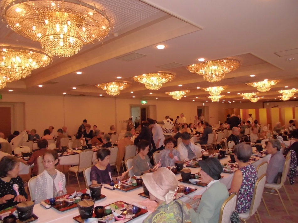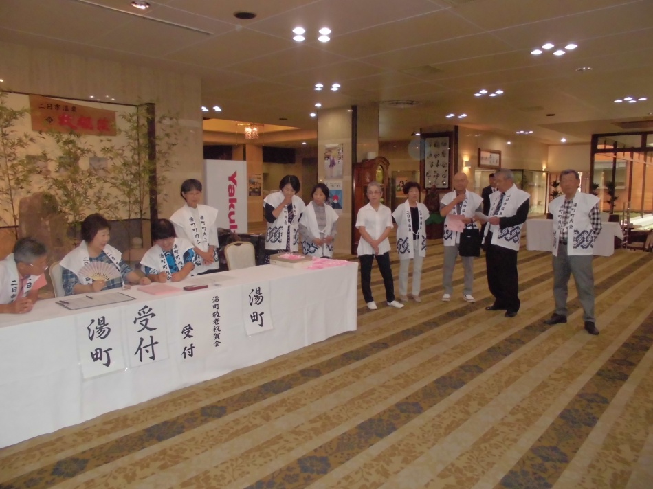 9月16日(月祝)に、大観荘にて湯町区敬老祝賀会を開催いたしました。本年は台風などの影響がなく、滞りなく終えることができました。今年は75才以上の長寿者は458名で祝賀会に出席された方は144名でした。