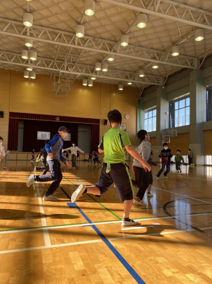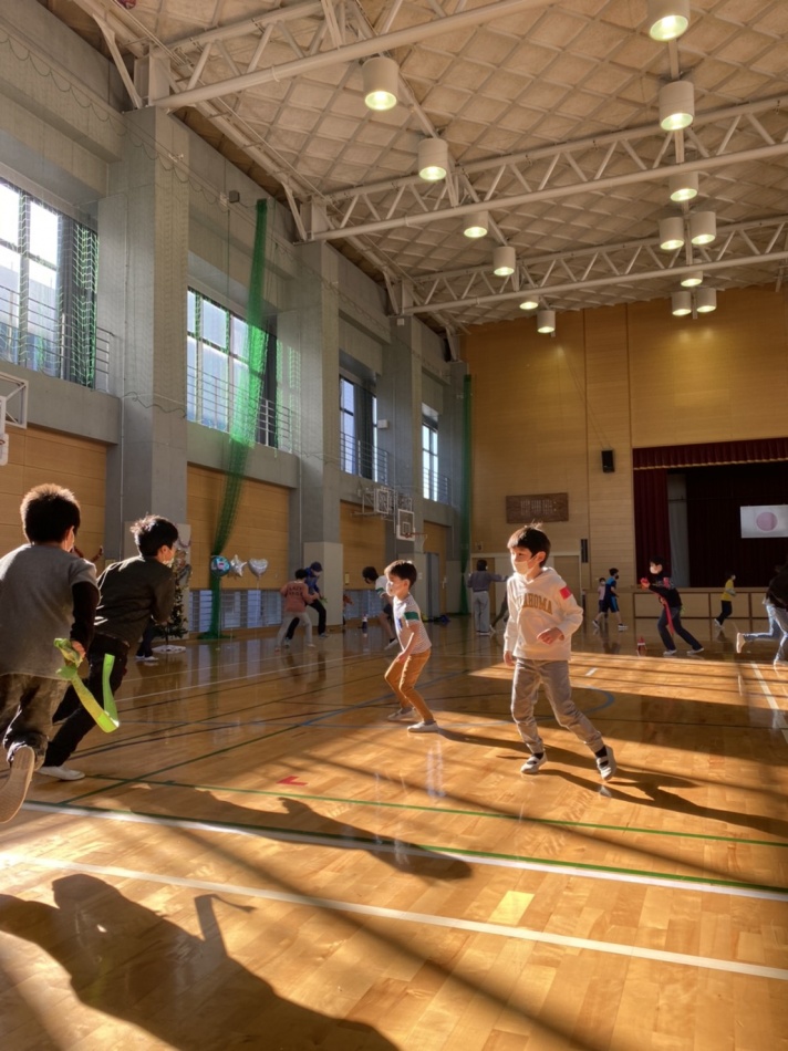 12/5*クリスマス会 二日市小学校の体育館でクリスマス会を開催しました。参加者は80名。長縄・しっぽ取り・プレゼント渡しで、とても盛り上がりました‼*三密防止の為男女別での開催、常時換気などの対策を行いました。