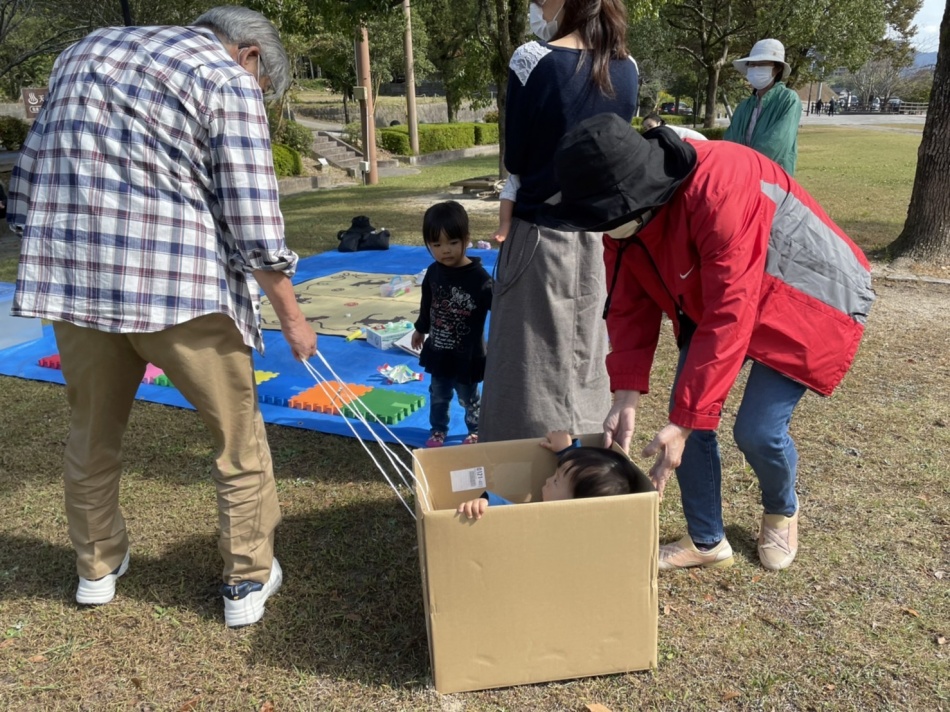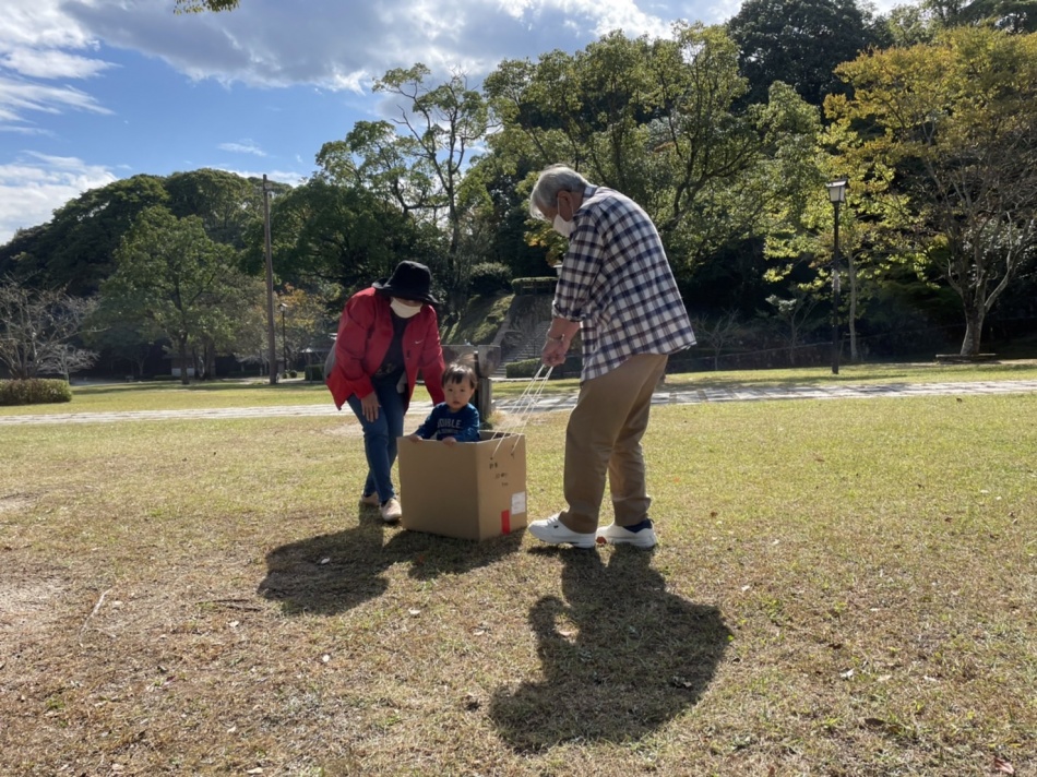 天拝公園に行き水鉄砲やシャボン玉で遊びました。参加は少なかったのですが、スタッフも童心に返って楽しみました。