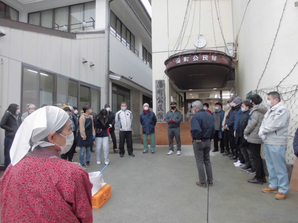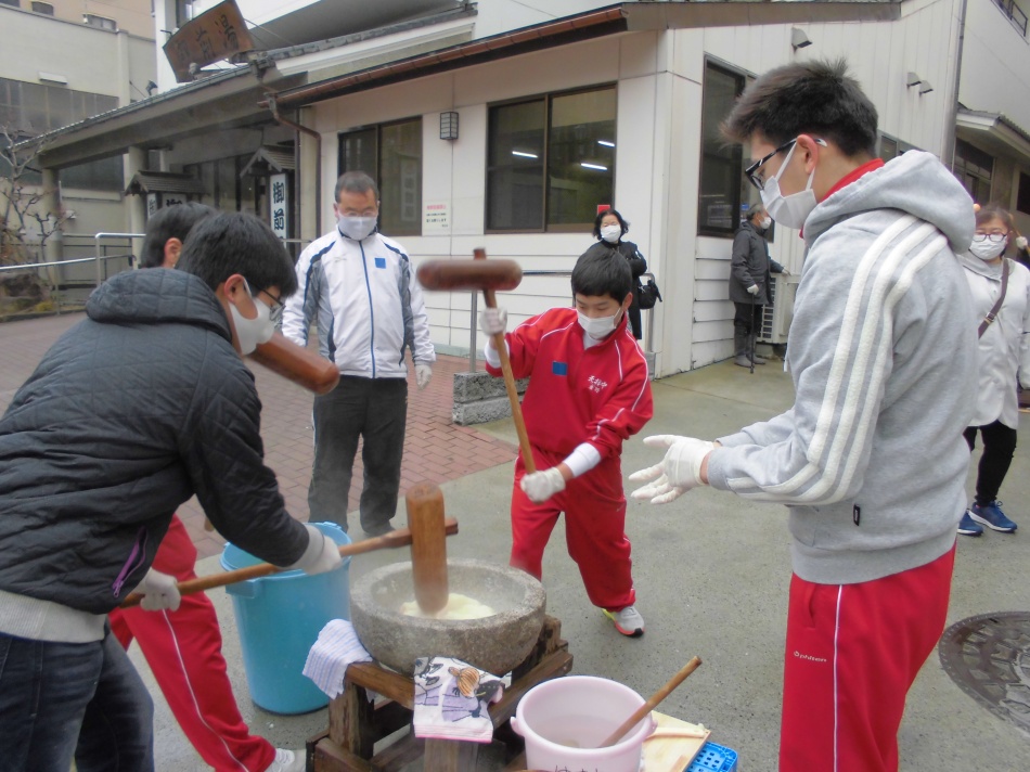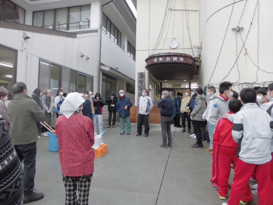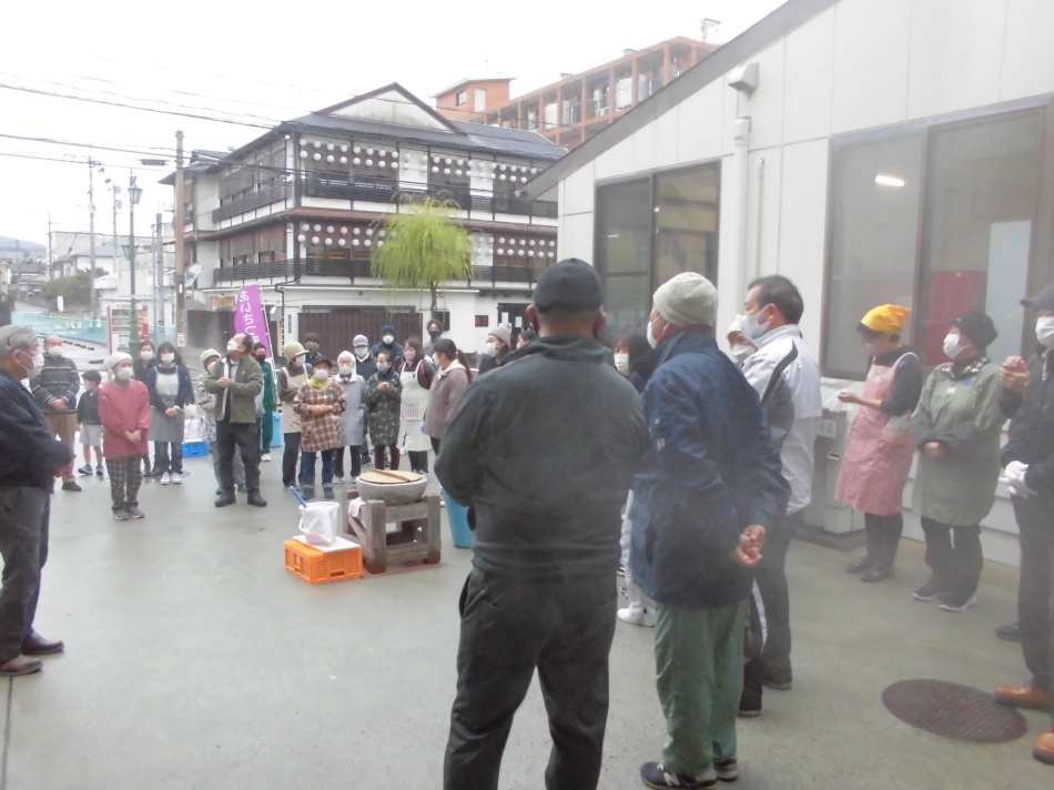 2年ぶりに餅つき大会を開催しました。去年していないので、不手際なこともありましたが、皆様のご協力のおかげで、とてもおいしいお餅ができました。ありがとうございました。湯町公式LINEに動画をアップしています。でも寒かった❢