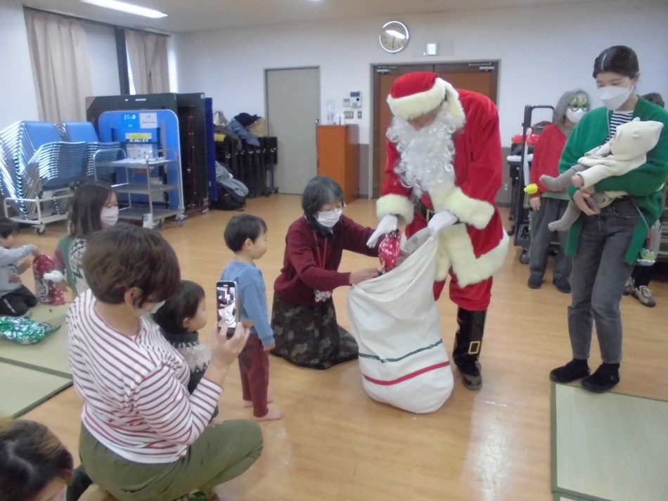 たくさんのお友達が集まり、風船でアンパンマンを作ったり、サンタクロースにプレゼントを貰いました。