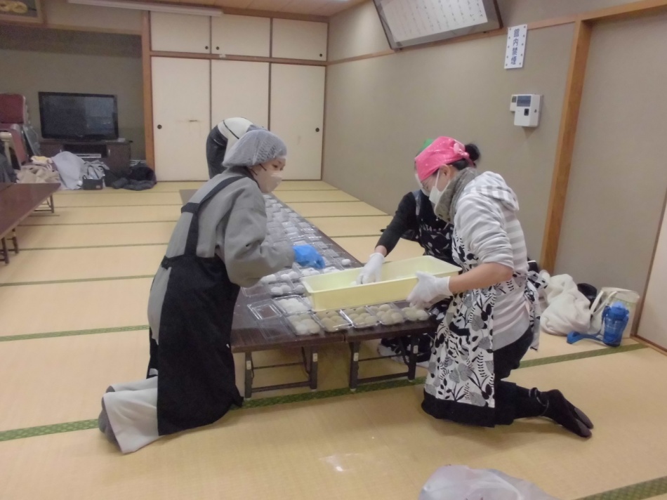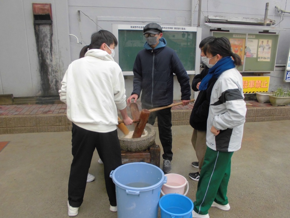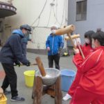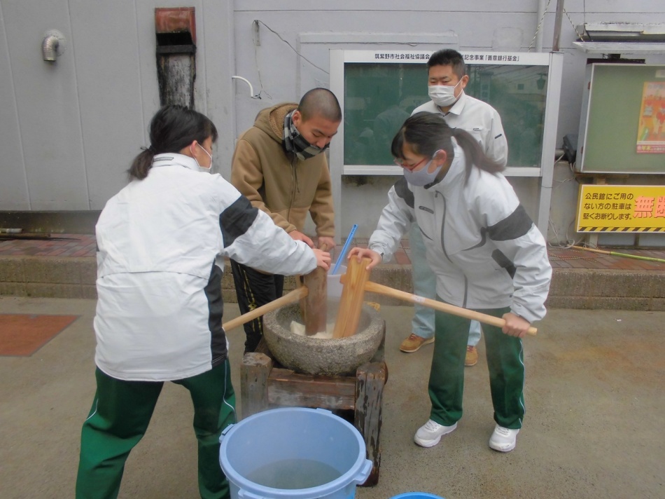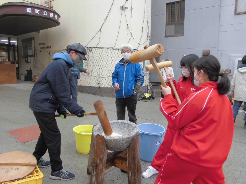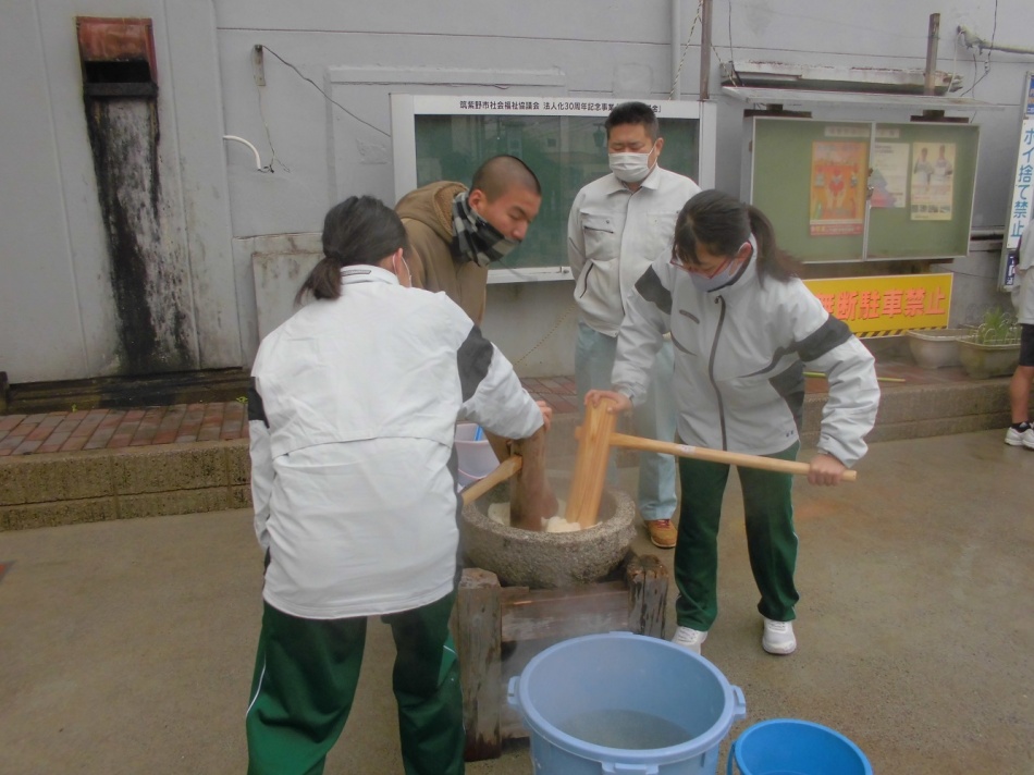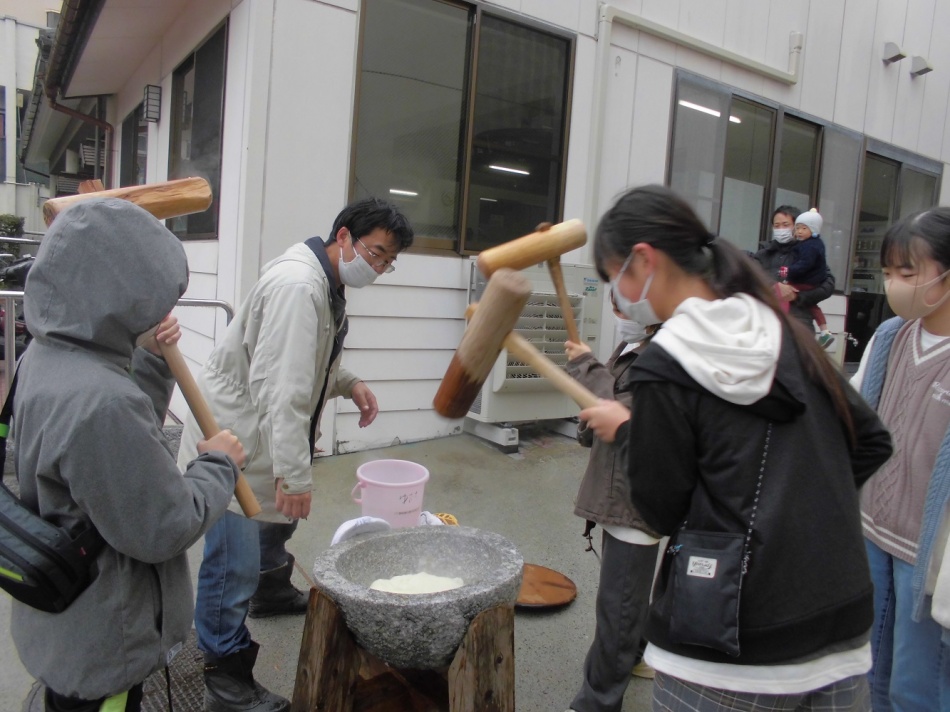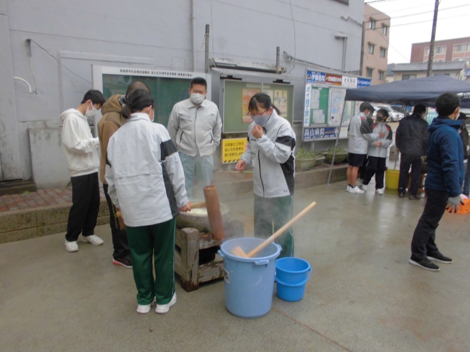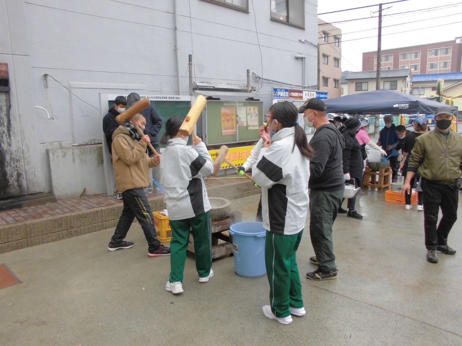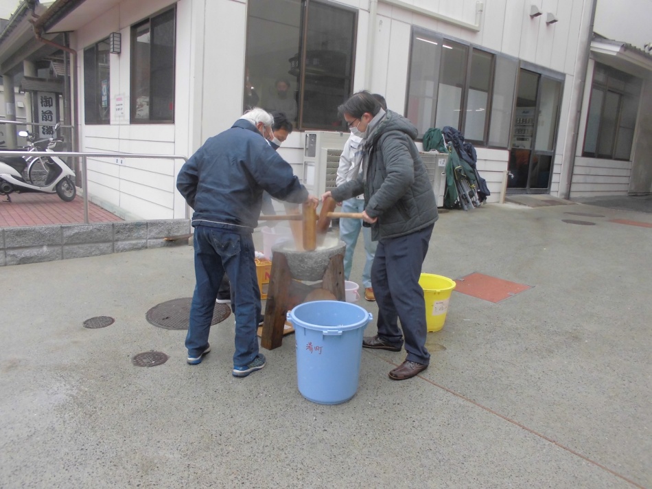 中学生も参加して下さり、おいしいお餅ができました。コロナ感染予防を考えながら高齢者の方へのお餅配りもしました。