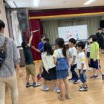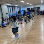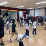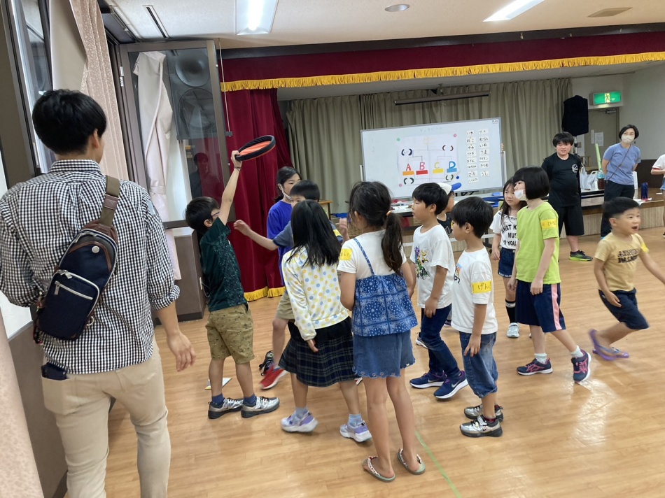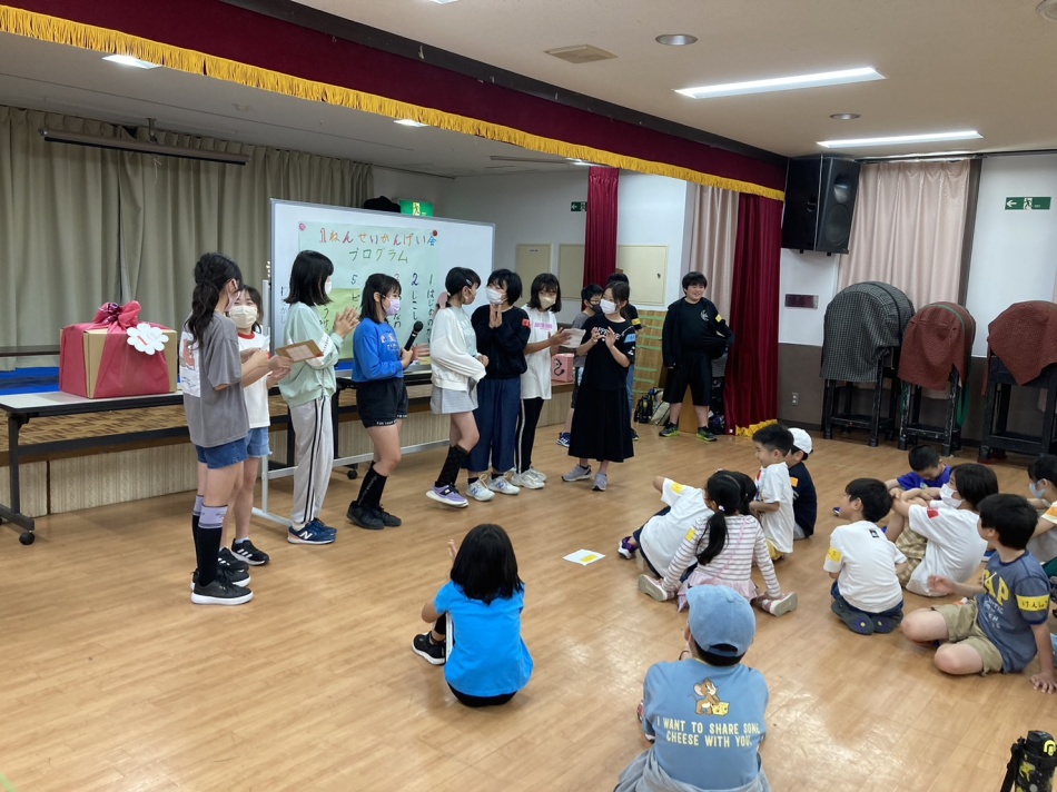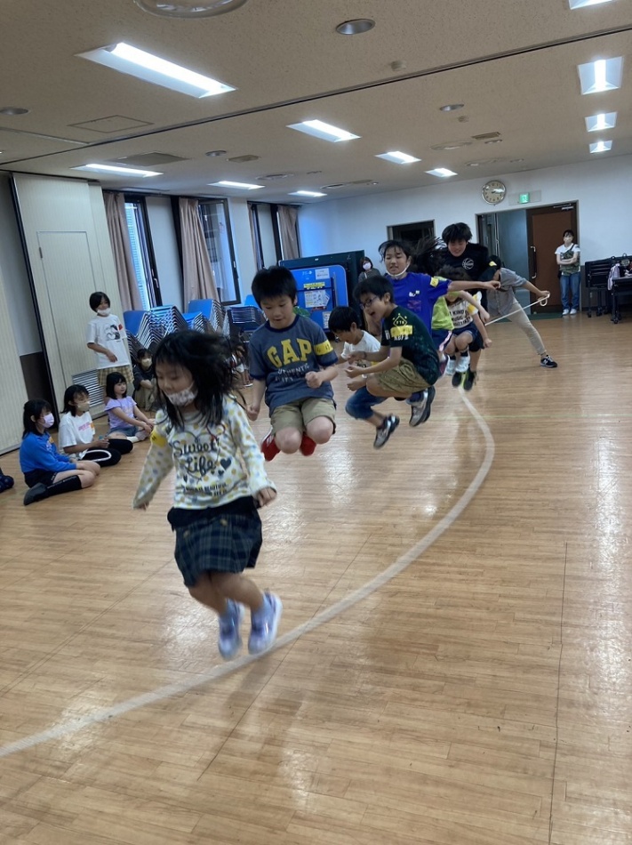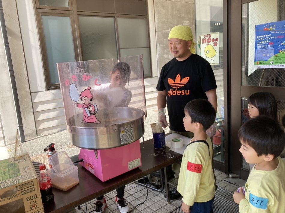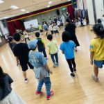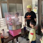 今年度は16名の新1年生を含め60名のこどもと約10名の保護者で歓迎会を開催しました。大繩・ドッチビー・ビンゴ等をして楽しみました。帰りには区長と中学生が綿菓子も作ってくれて、みんな笑顔でした。