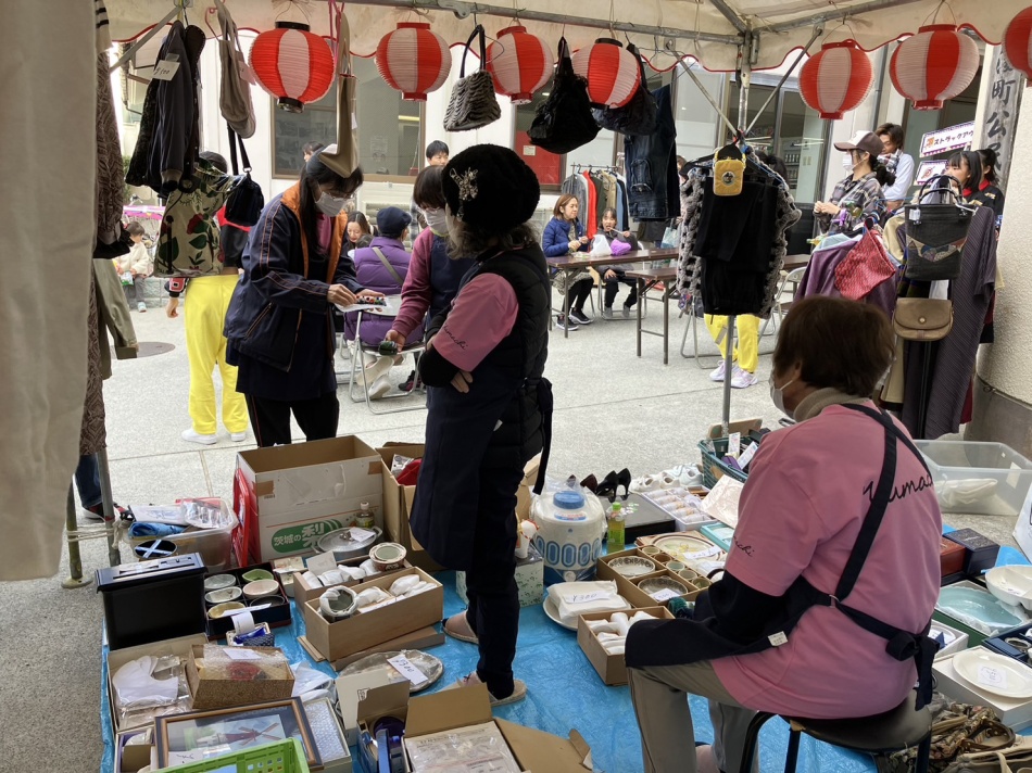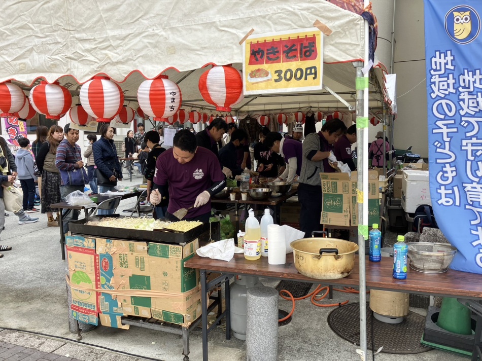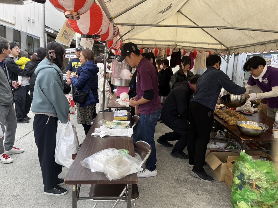 公民館前駐車場では『ボンズクラブ』が焼きそば・ポテトなどを販売し、女性部や公民館役員有志もバザーをしていました。