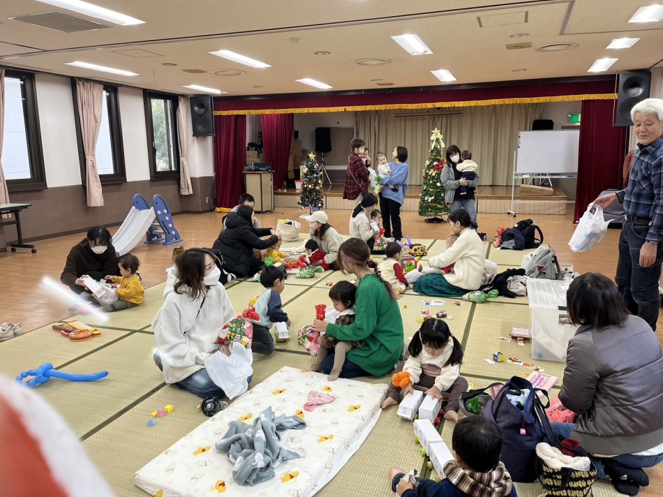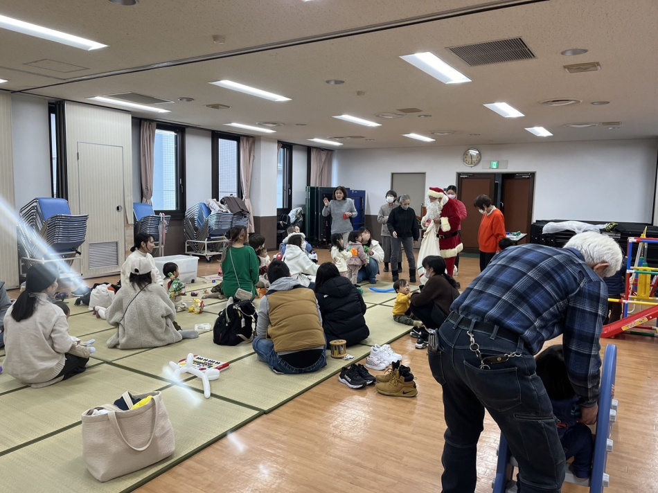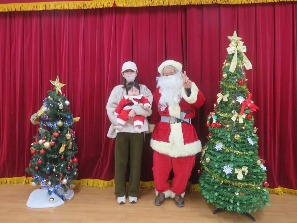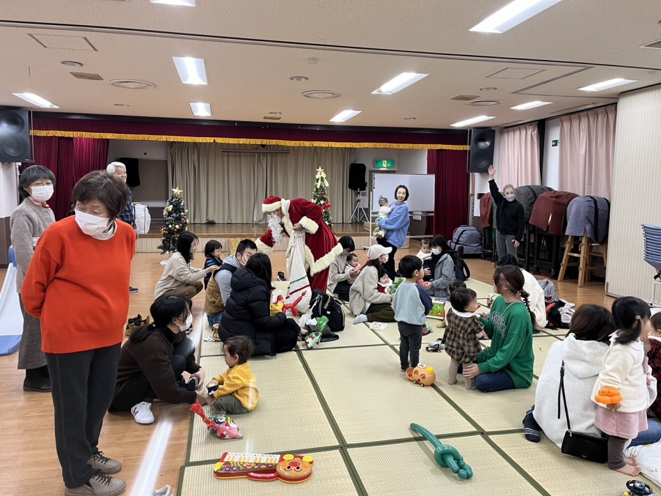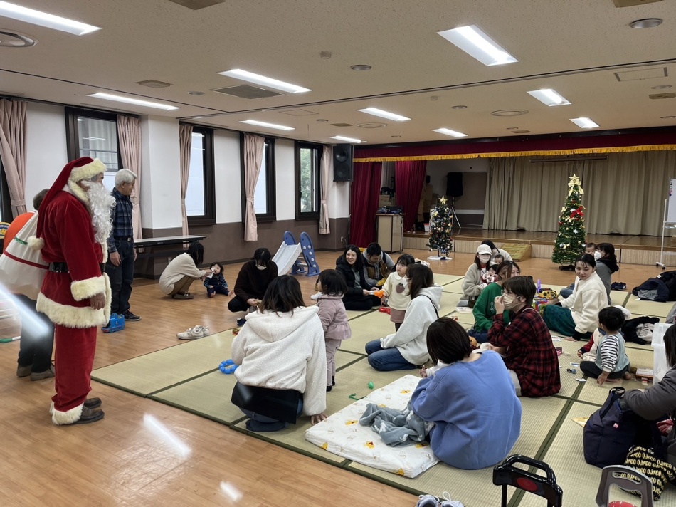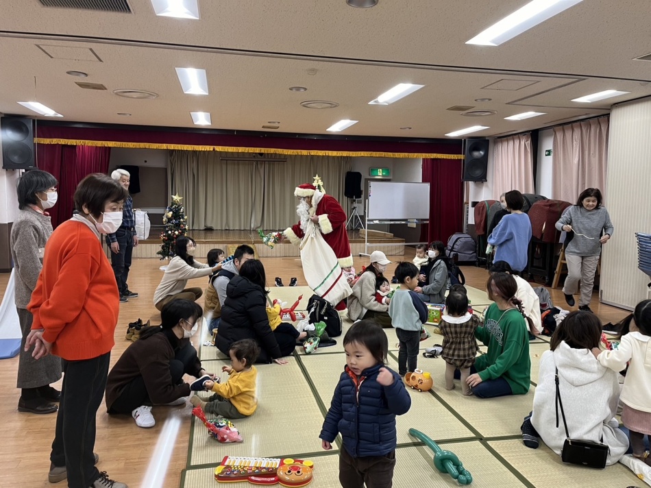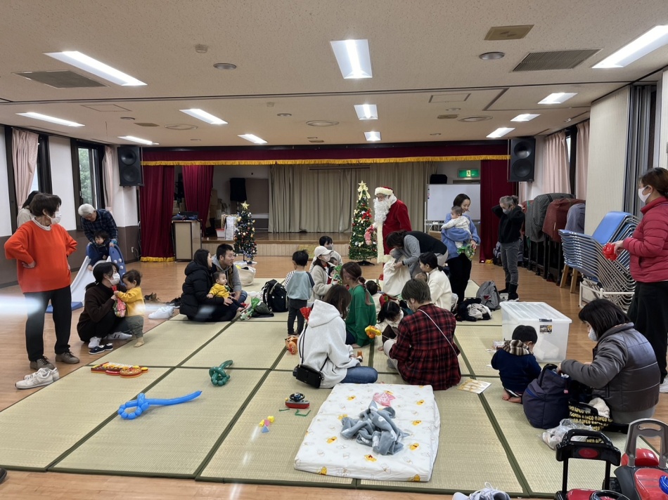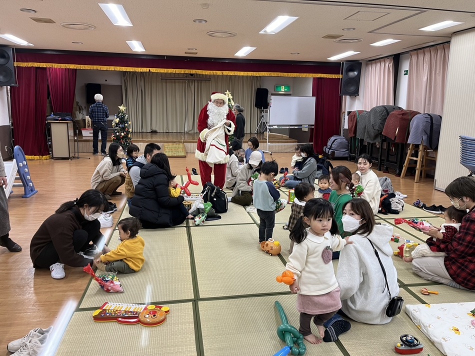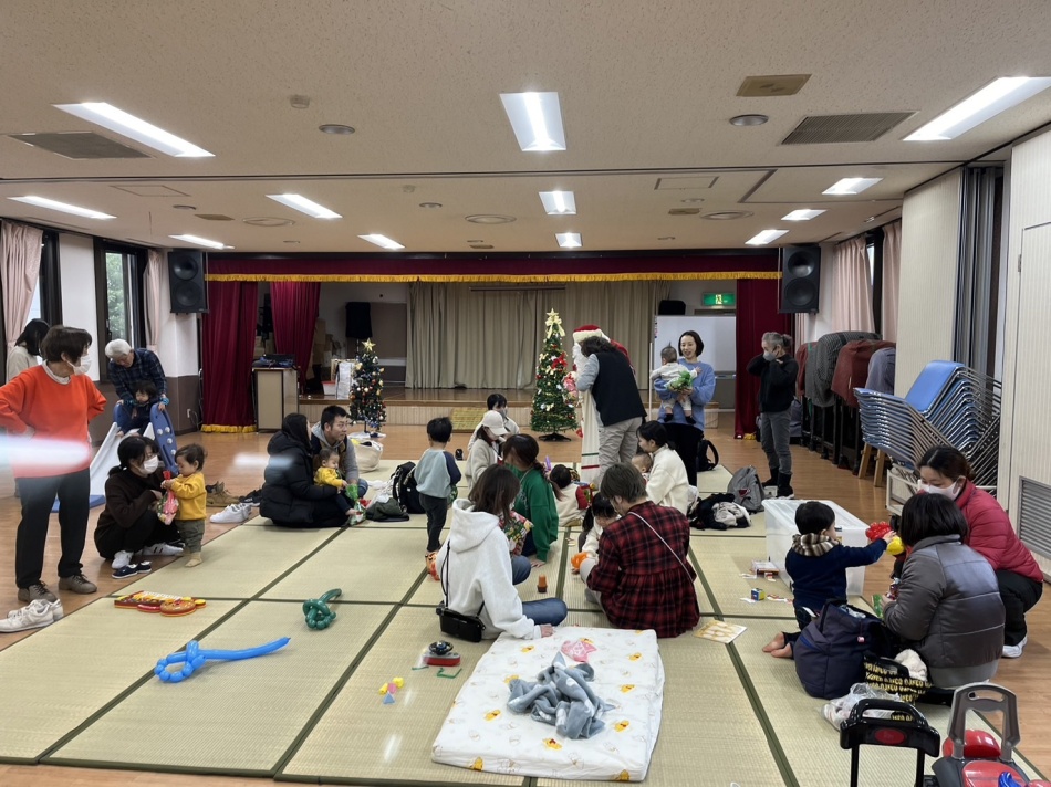 たくさんのお友達が集まり、風船でアンパンマンを作ったり、サンタクロースにプレゼントを貰いました。