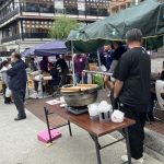 が焼きそば、女性部が鶏めしなどを販売し、中学生が綿菓子・型抜き・スーパーボールを販売していました。