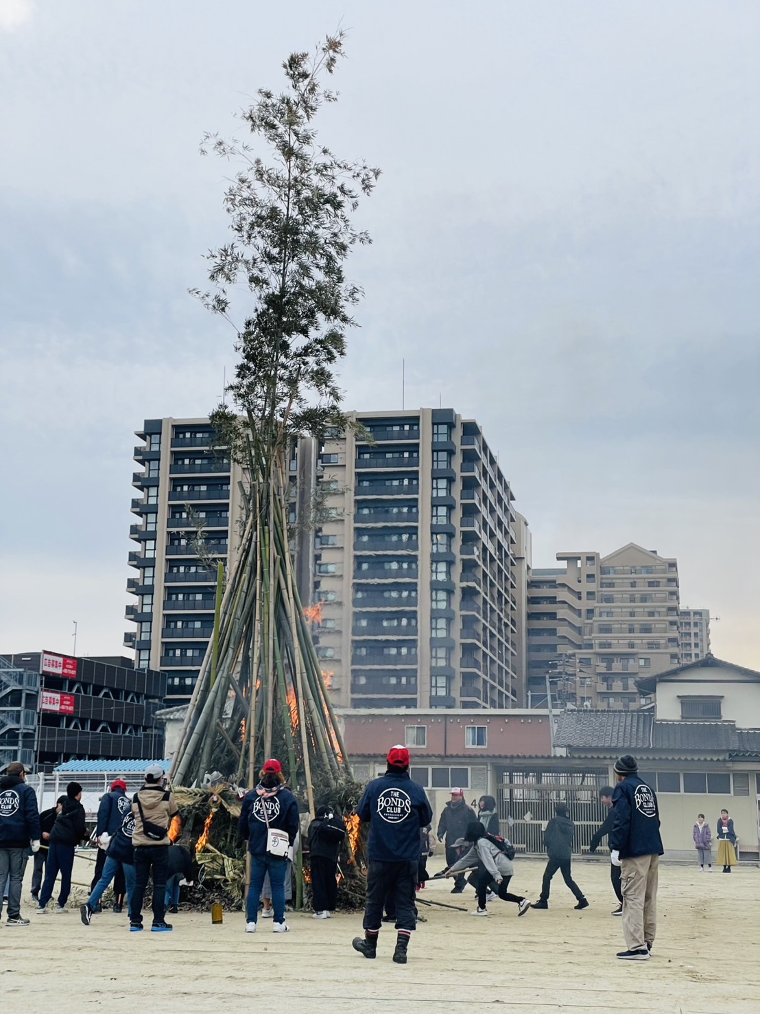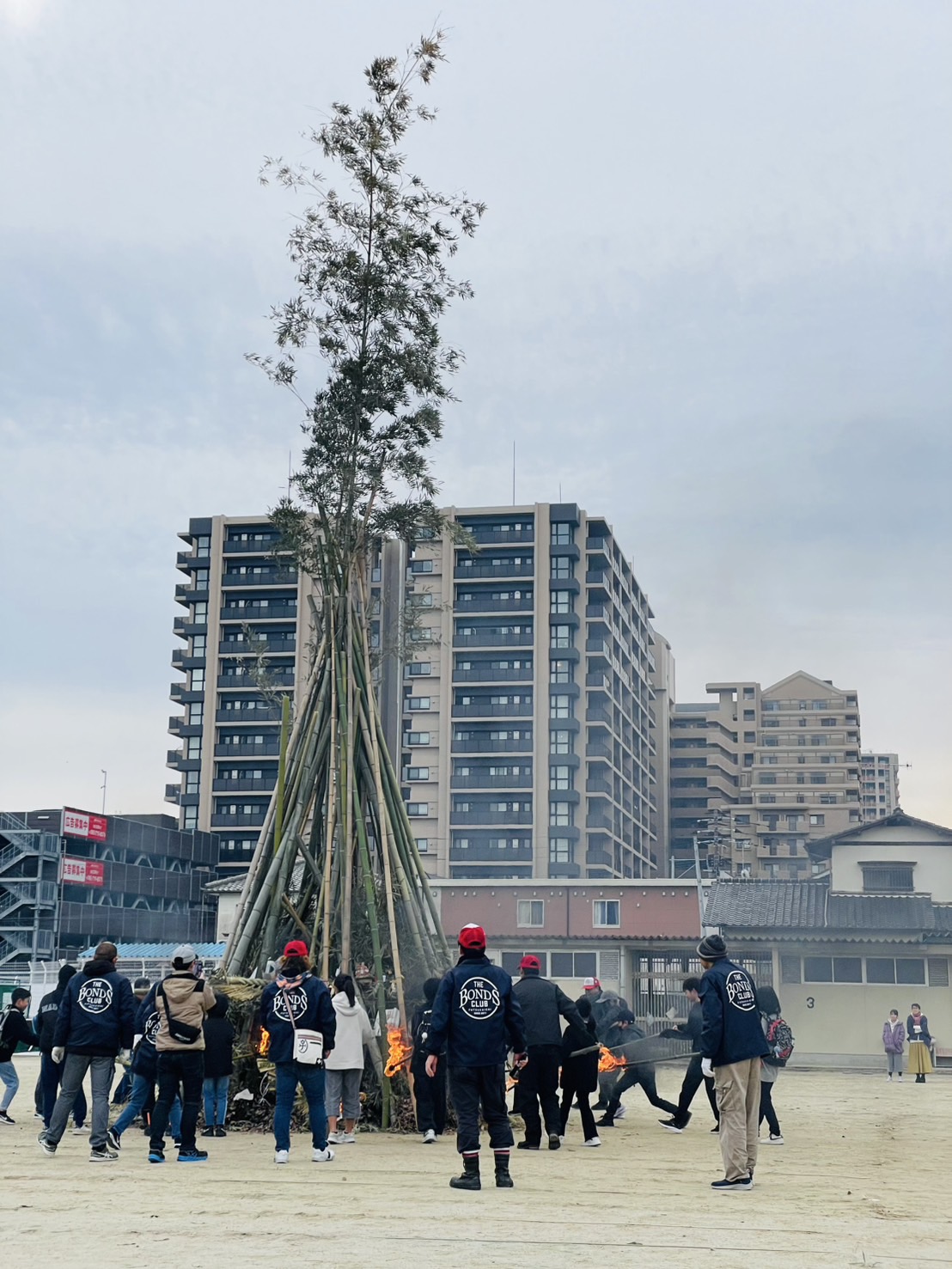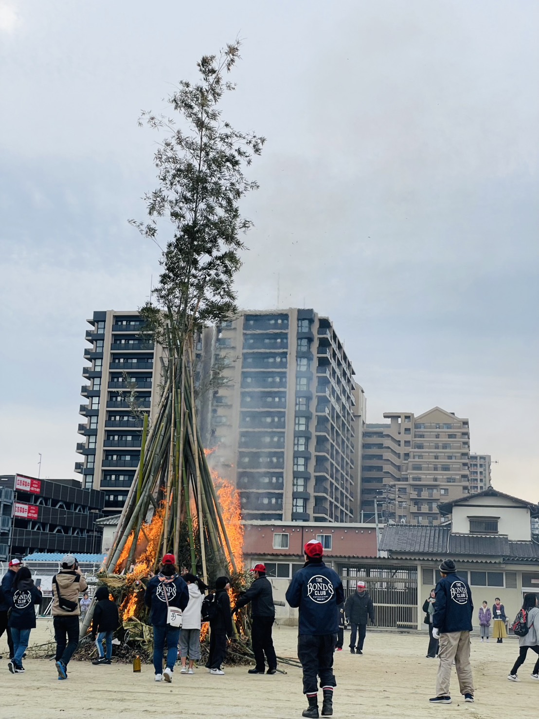 1月5日(日)二小の校庭でほうげんぎょう(どんど焼き)が行われました。真っ赤に燃え上がる炎に今年1年の無病息災を祈りました。