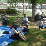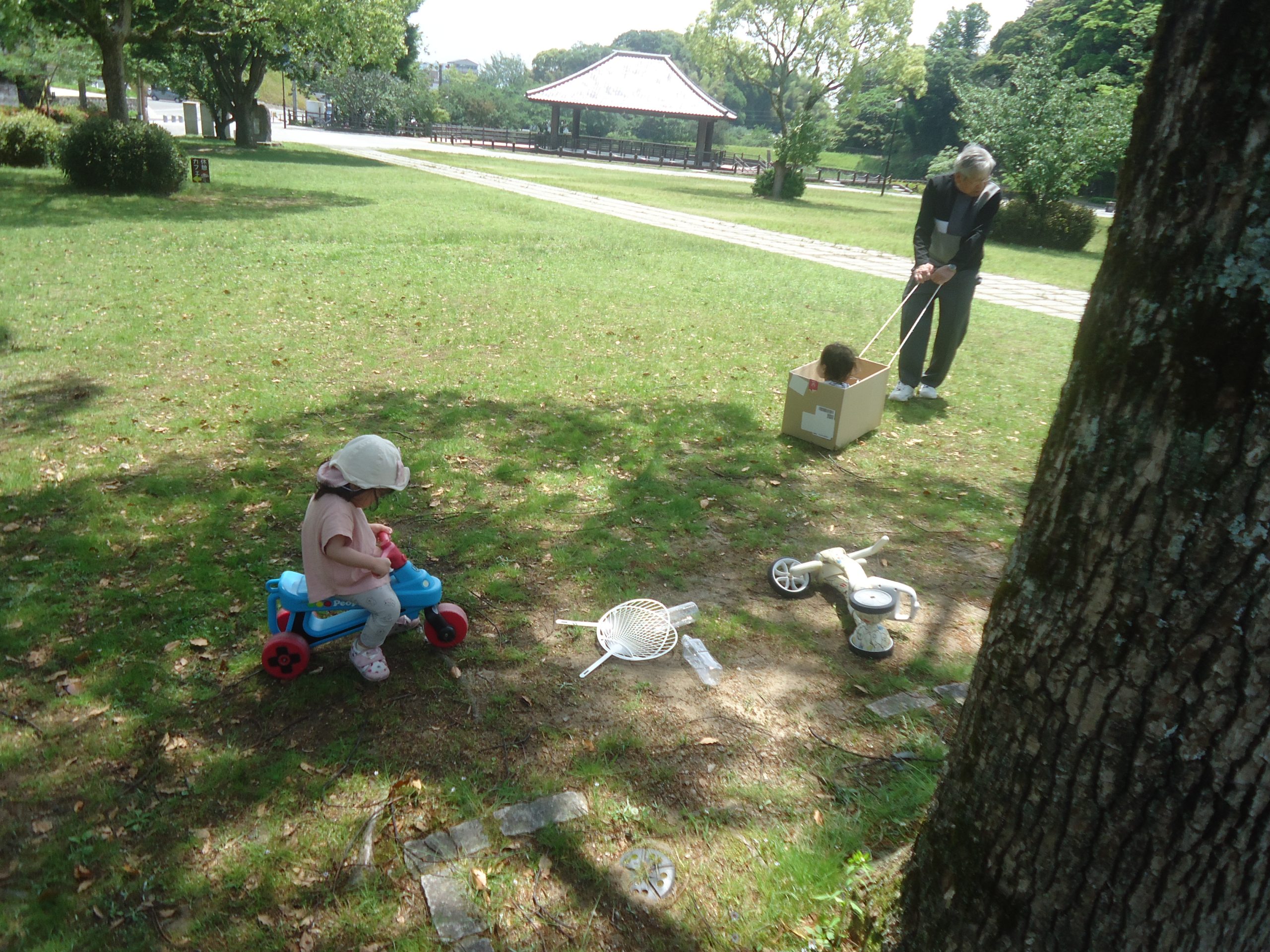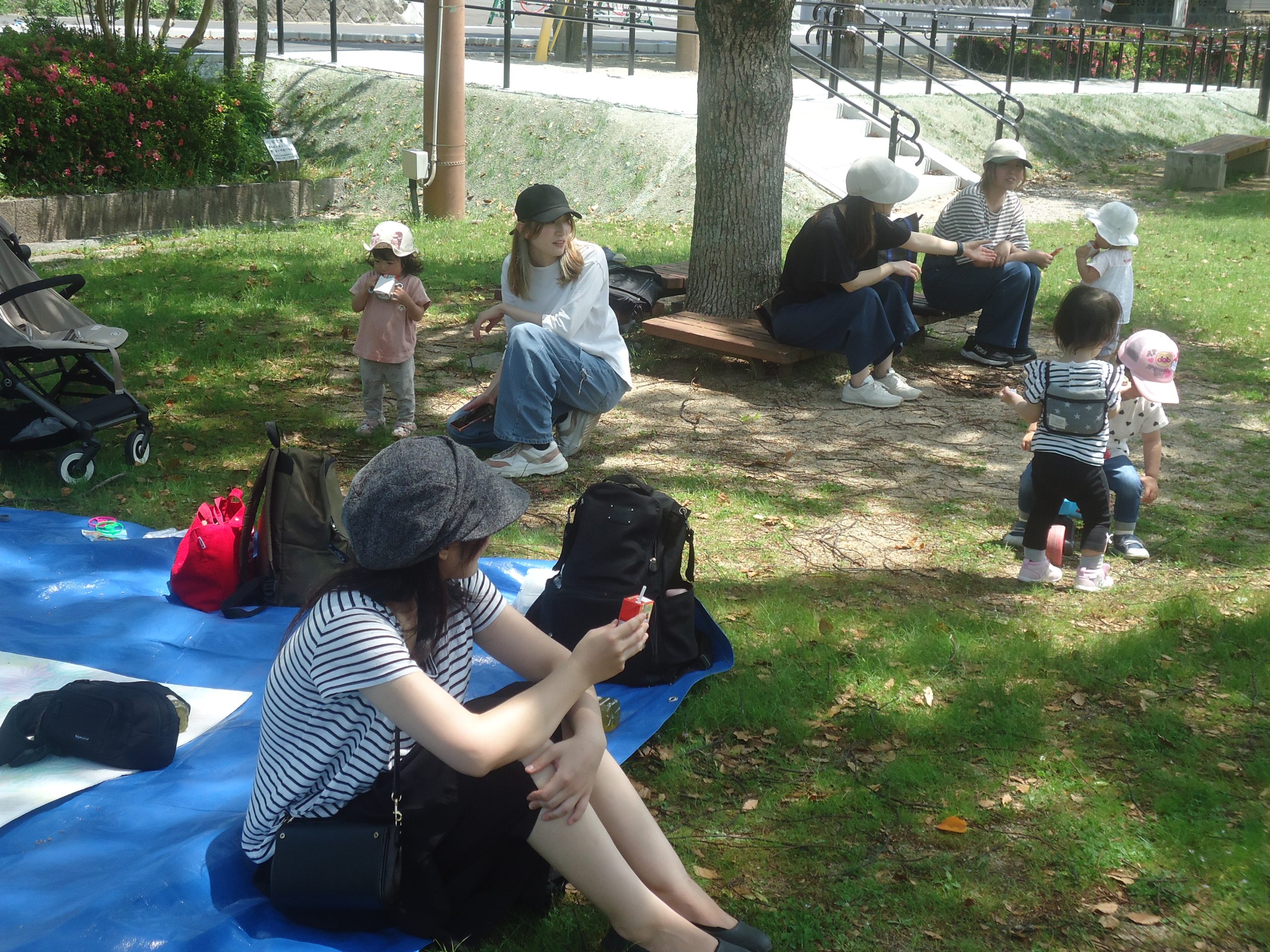 公園をゆまちっ子たちとおかあさんが駆け回っていました。