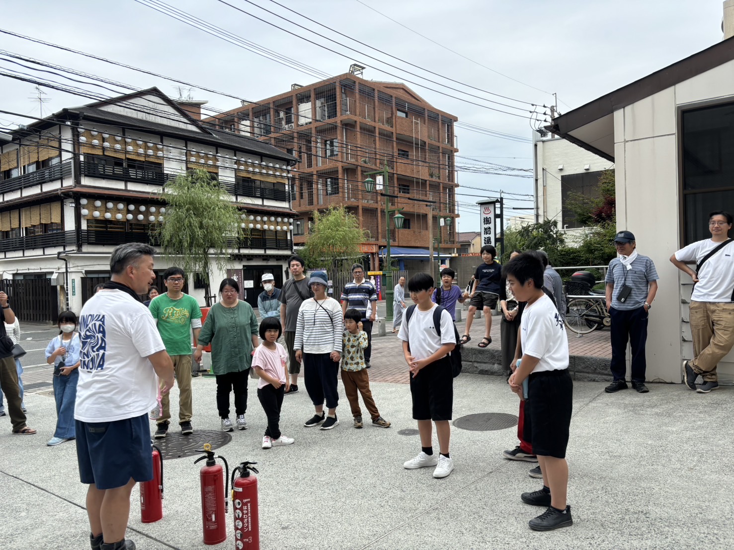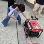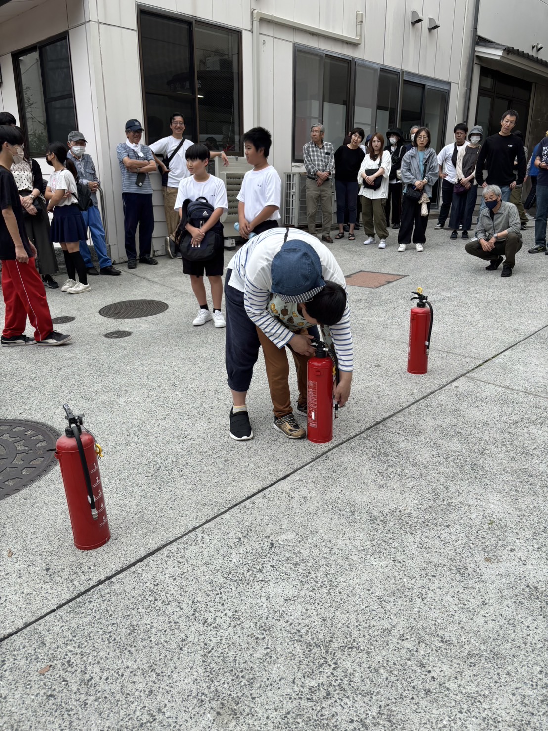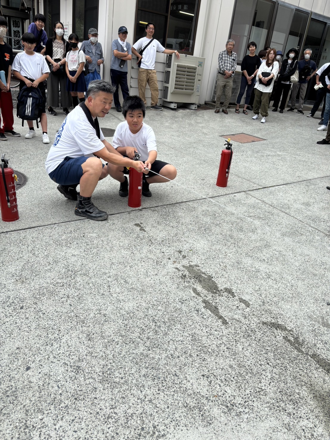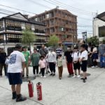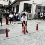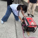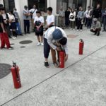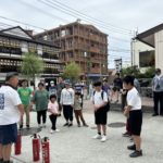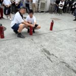 避難訓練をして、水消火器や発電機の仕方を教えて頂き、子どもたちも頑張りました。
