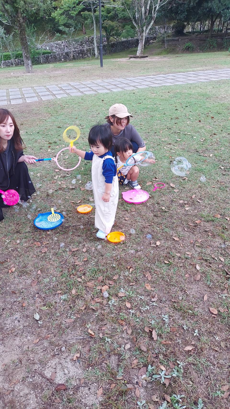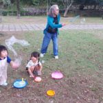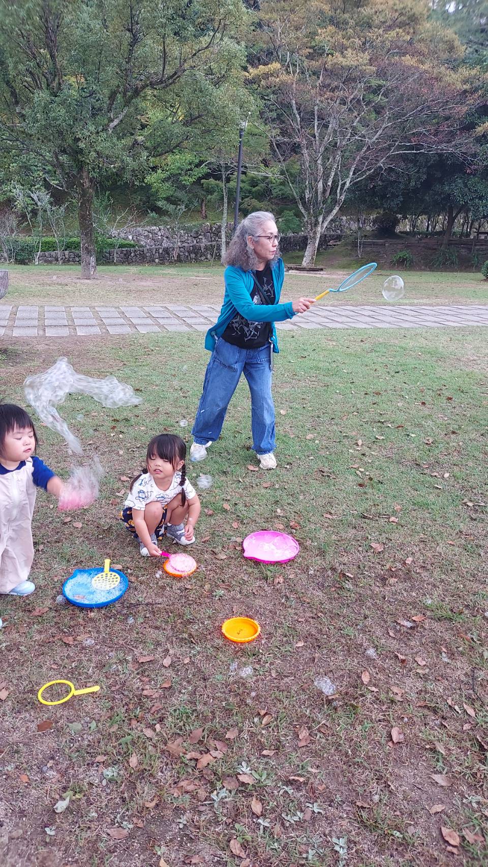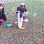 曇り空でしたが、少し風があってシャボン玉が とてもよく飛びました。