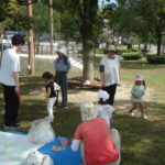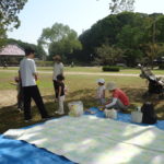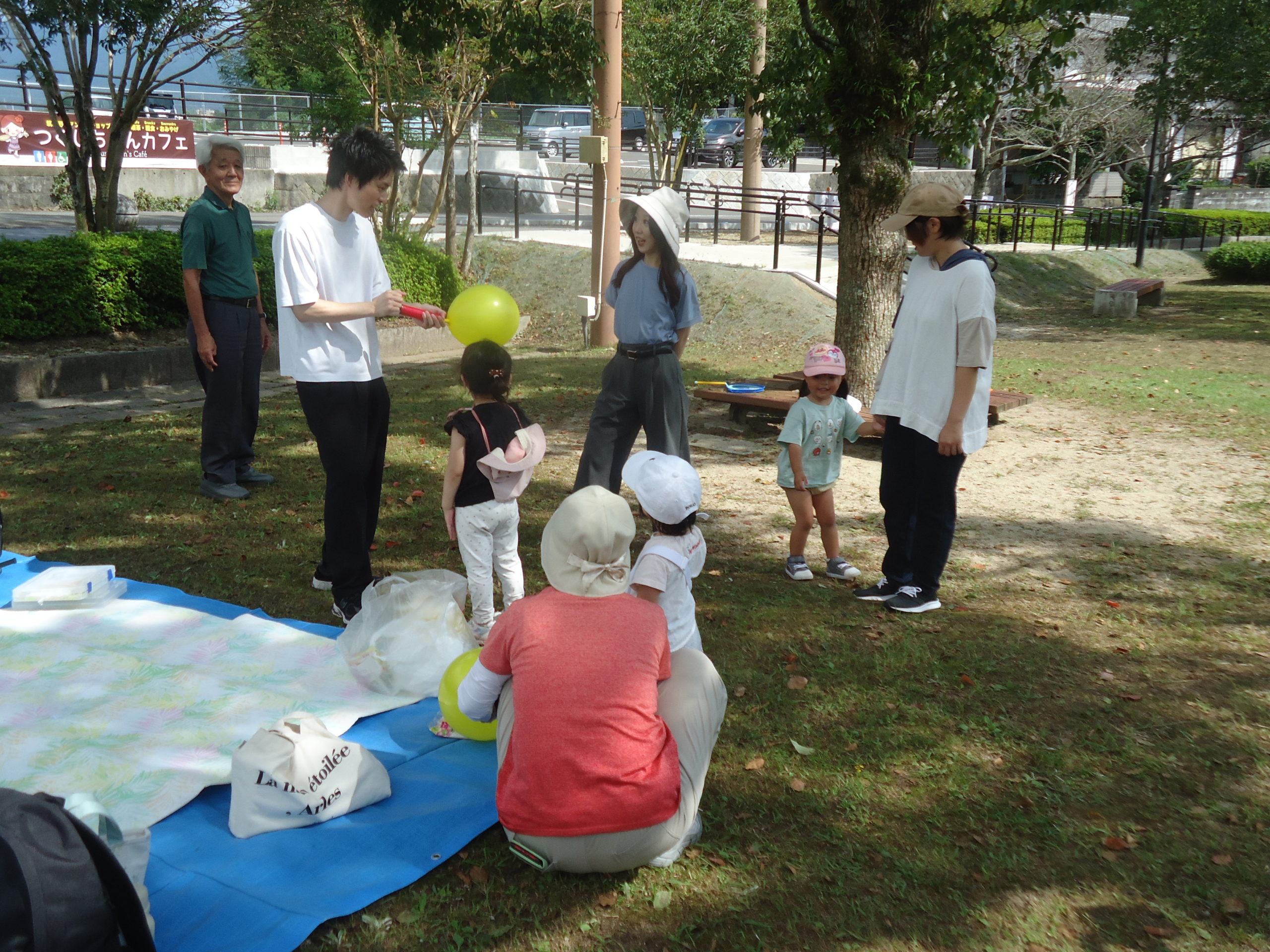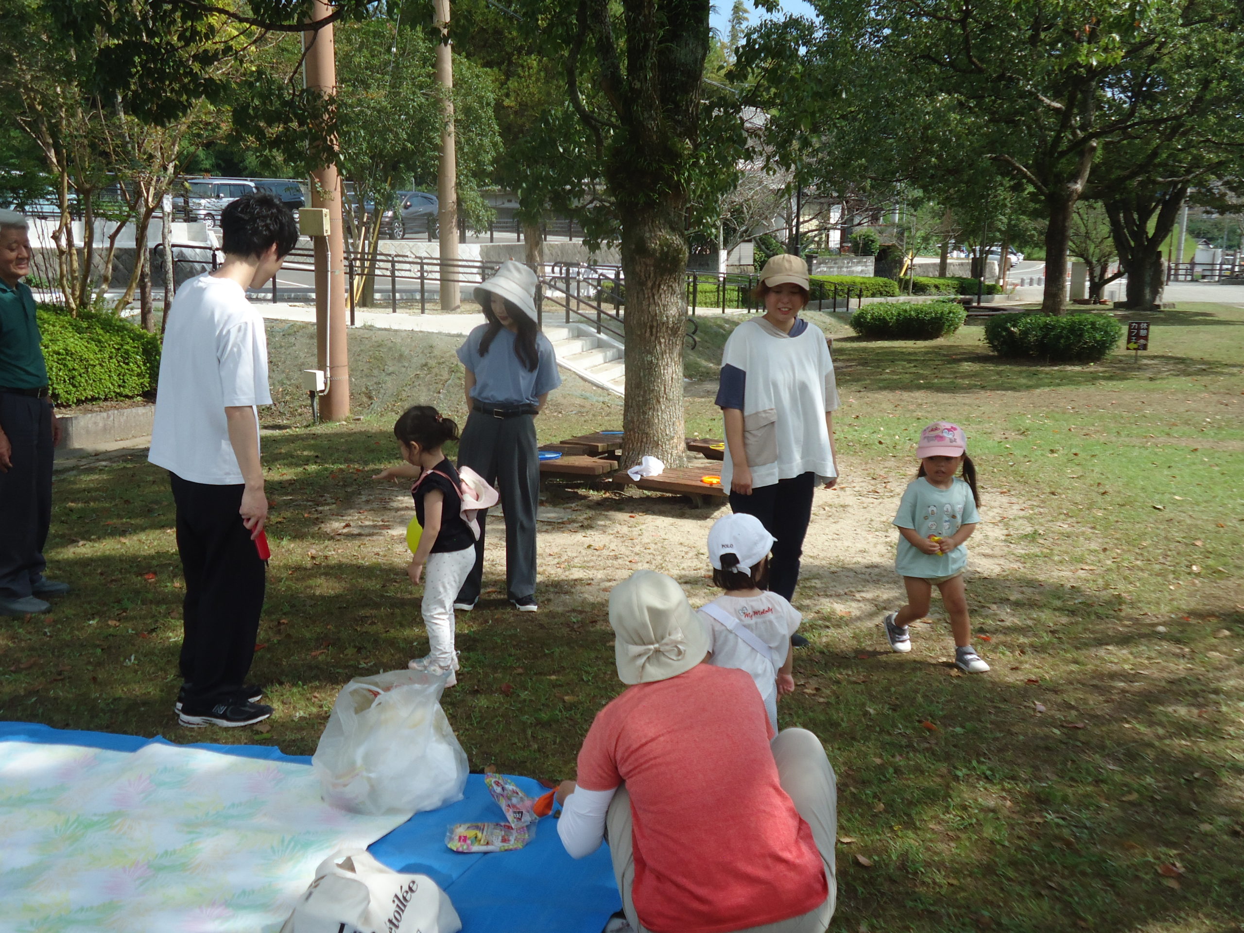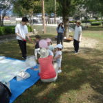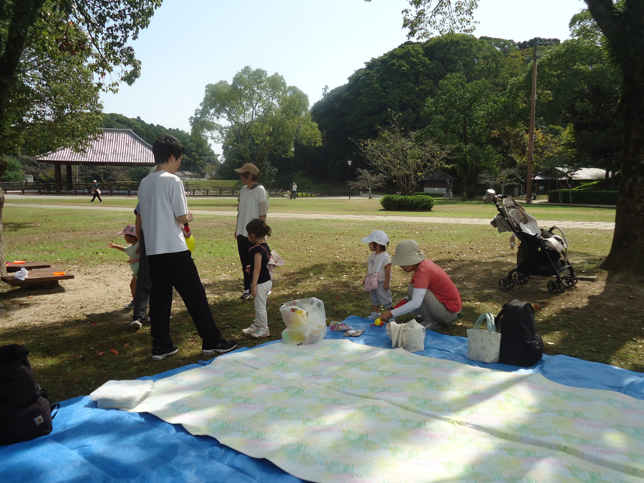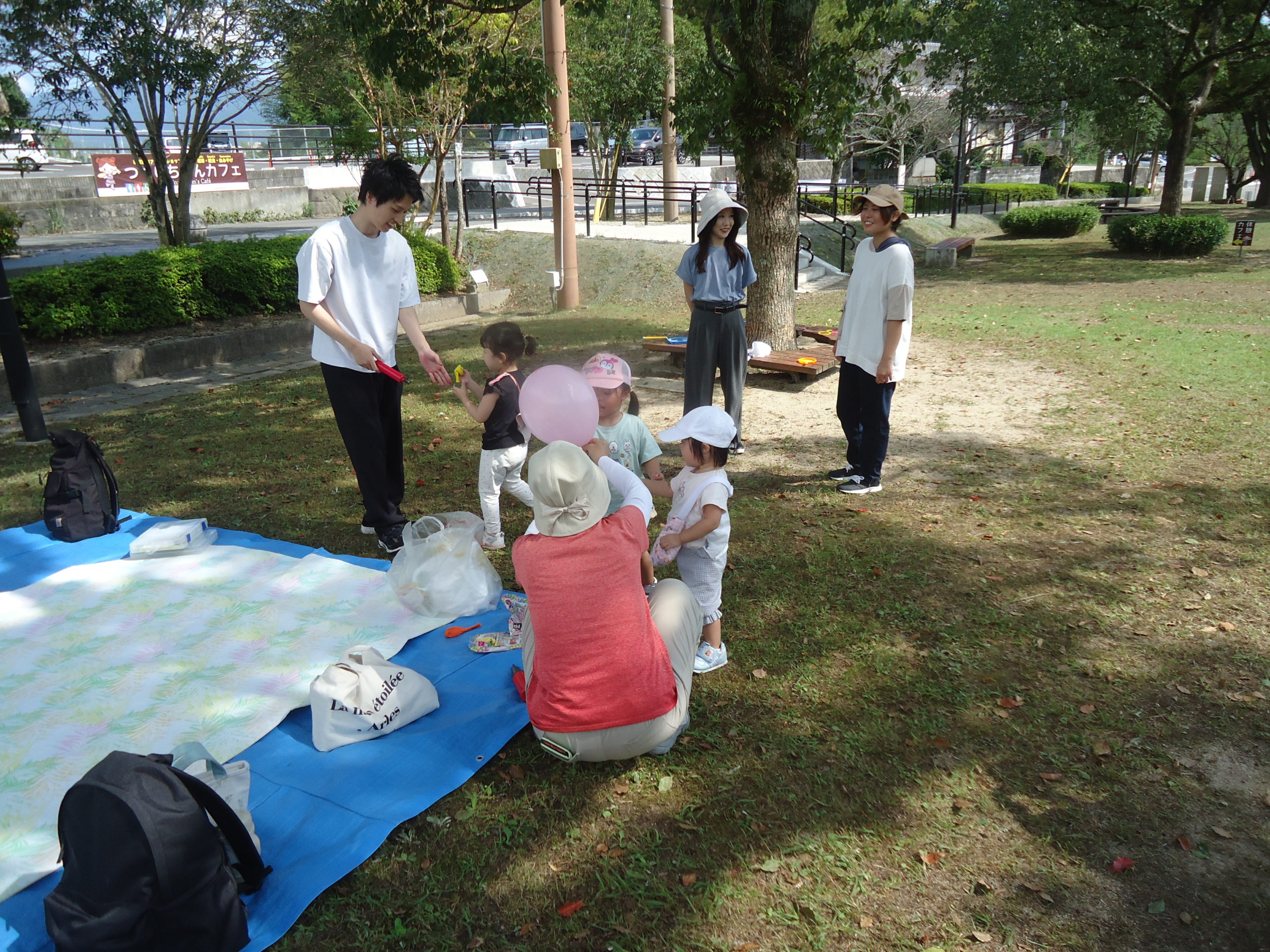 天拝公園に行き、シャボン玉や風船遊びをして遊びました。久しぶりに広い戸外で、みんなでおいしくお弁当を食べました。
