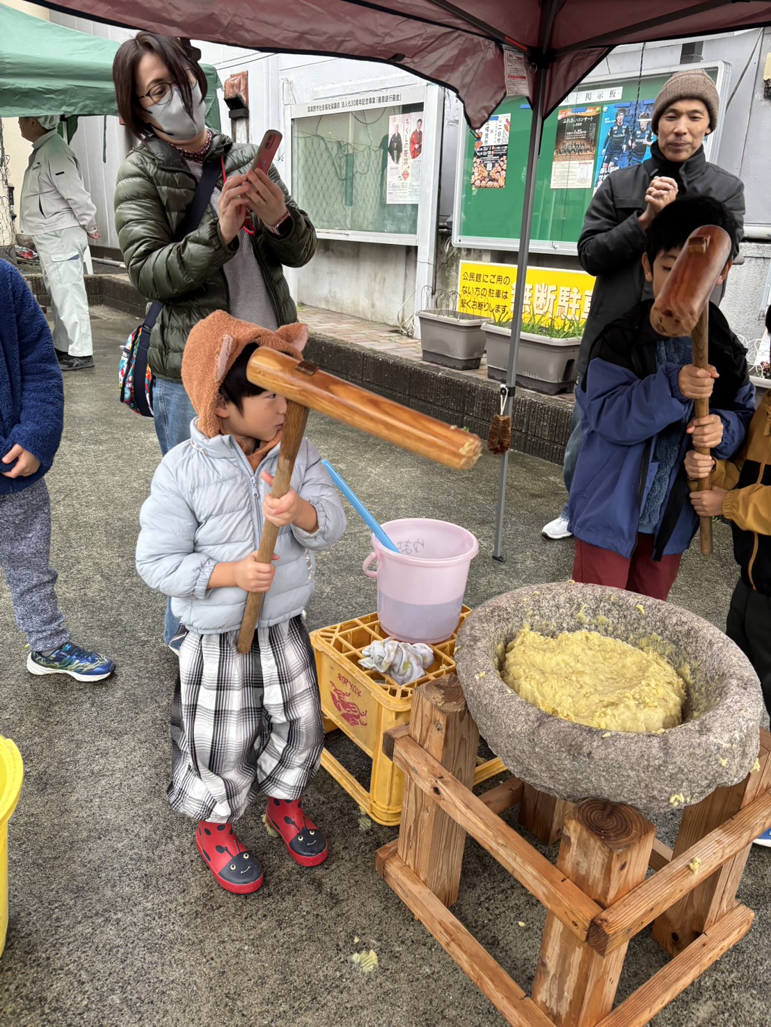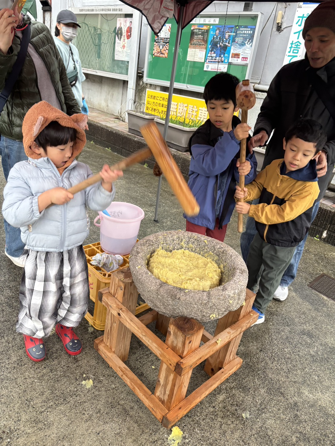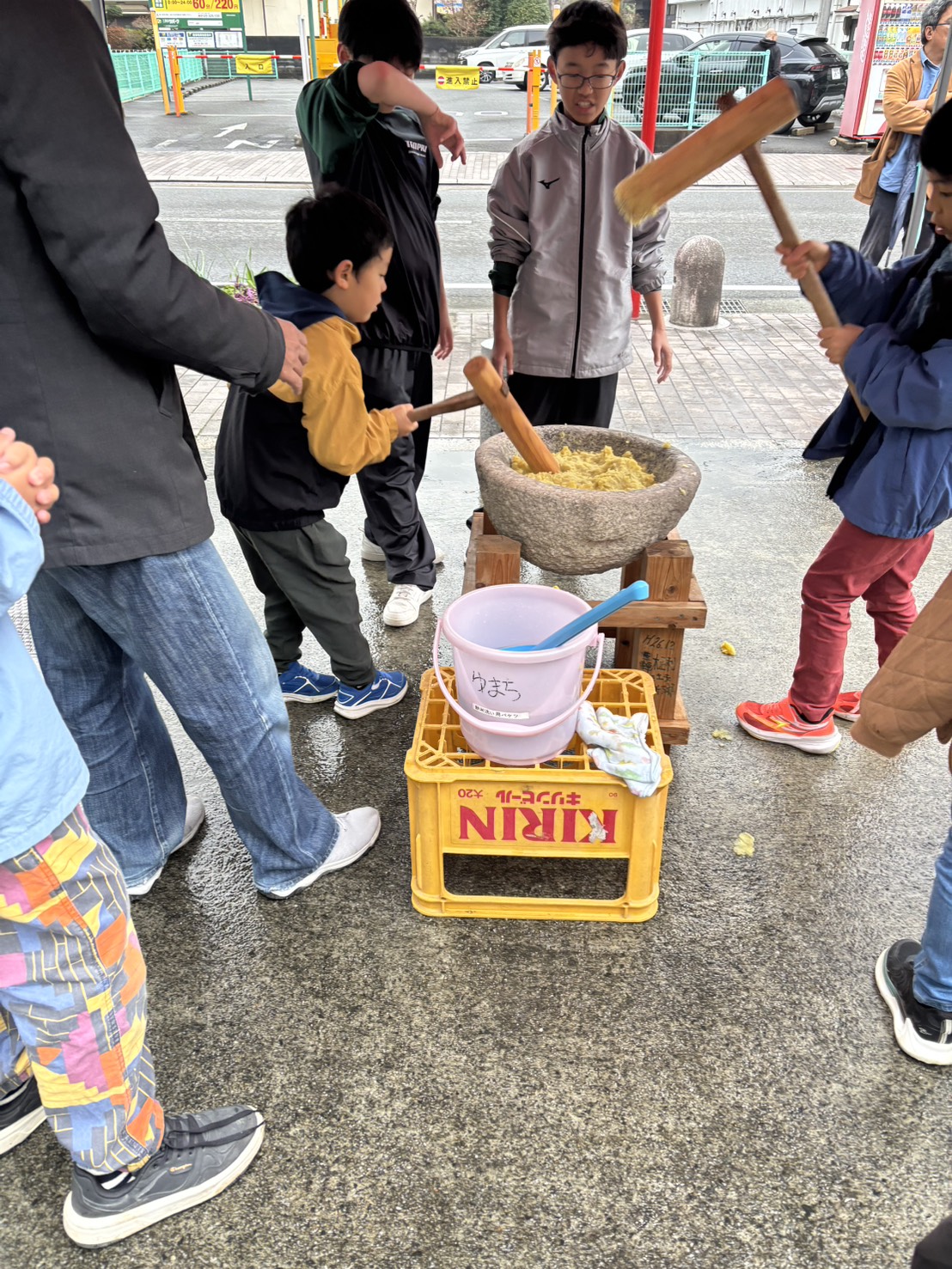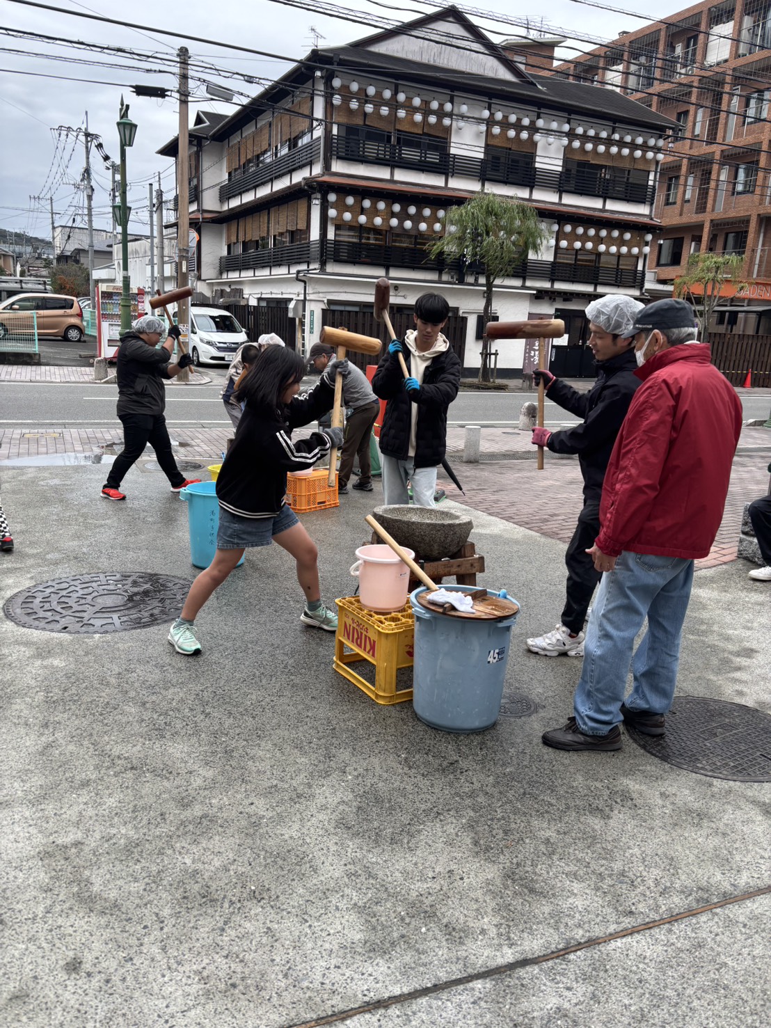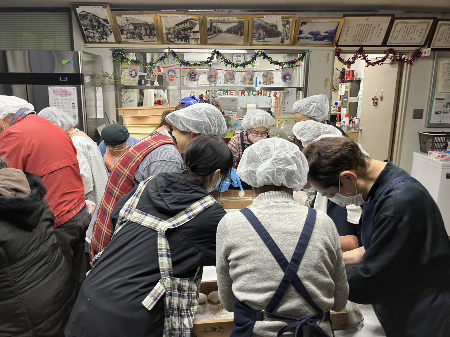 餅つき大会を通常開催しました。寒い中、朝早くから準備を始め、役員・組長さん等の協力のおかげで、とてもおいしいお餅ができました。お疲れ様でした。今年は参加者も多くて、にぎやかでした。
