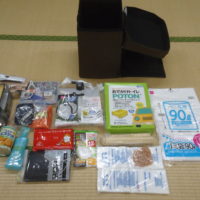 非常用持ち出し袋の中身の研修をしました。 災害時に必要なものは、状況に応じて「持ち歩きよう」「非情持ち出し用」「備蓄用」の3つに分けられます。