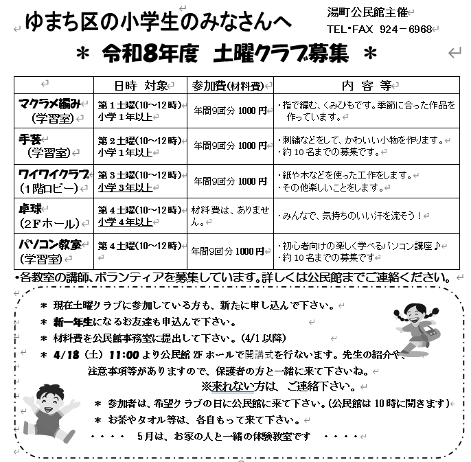 令和8年度土曜クラブの募集