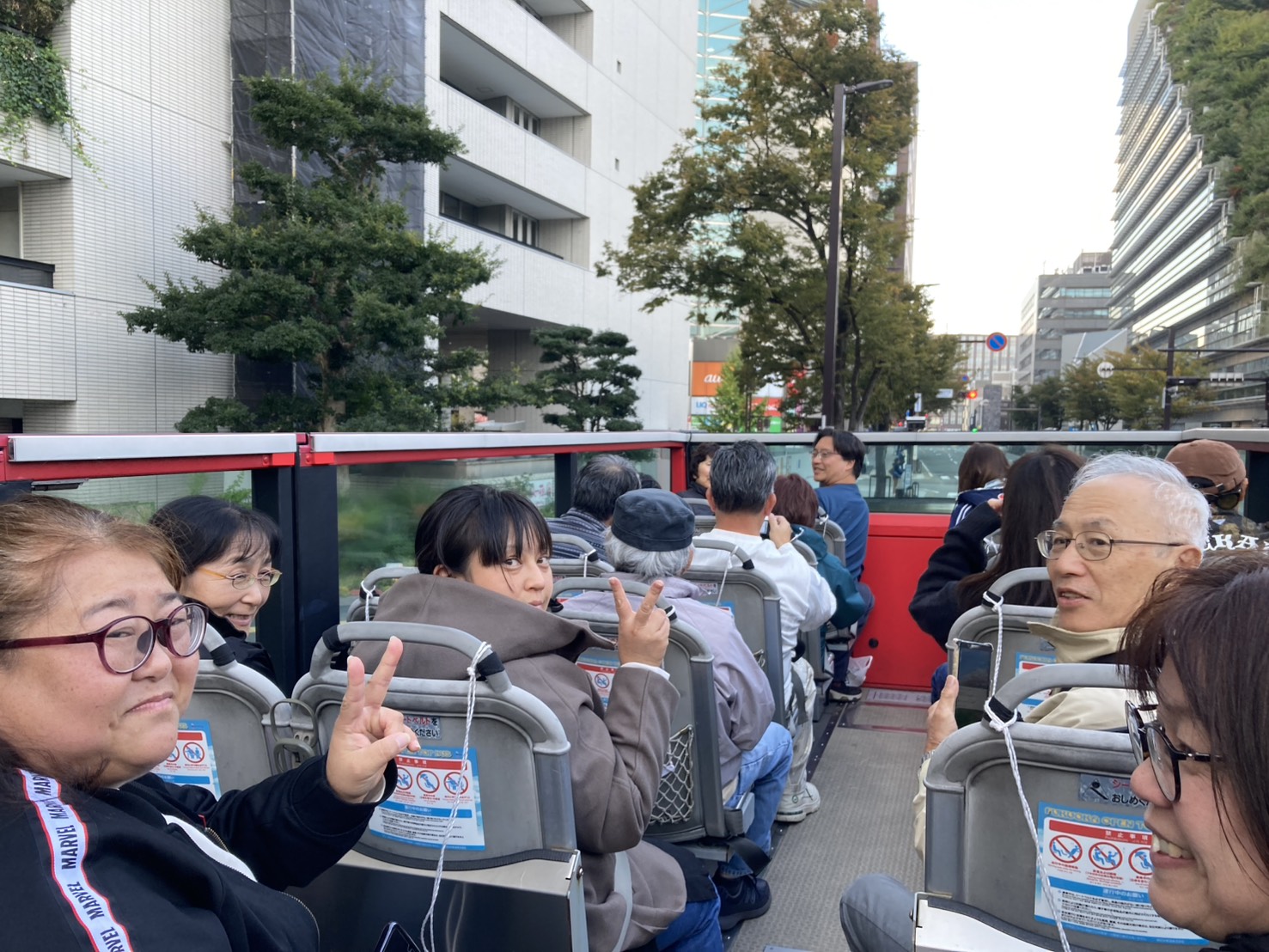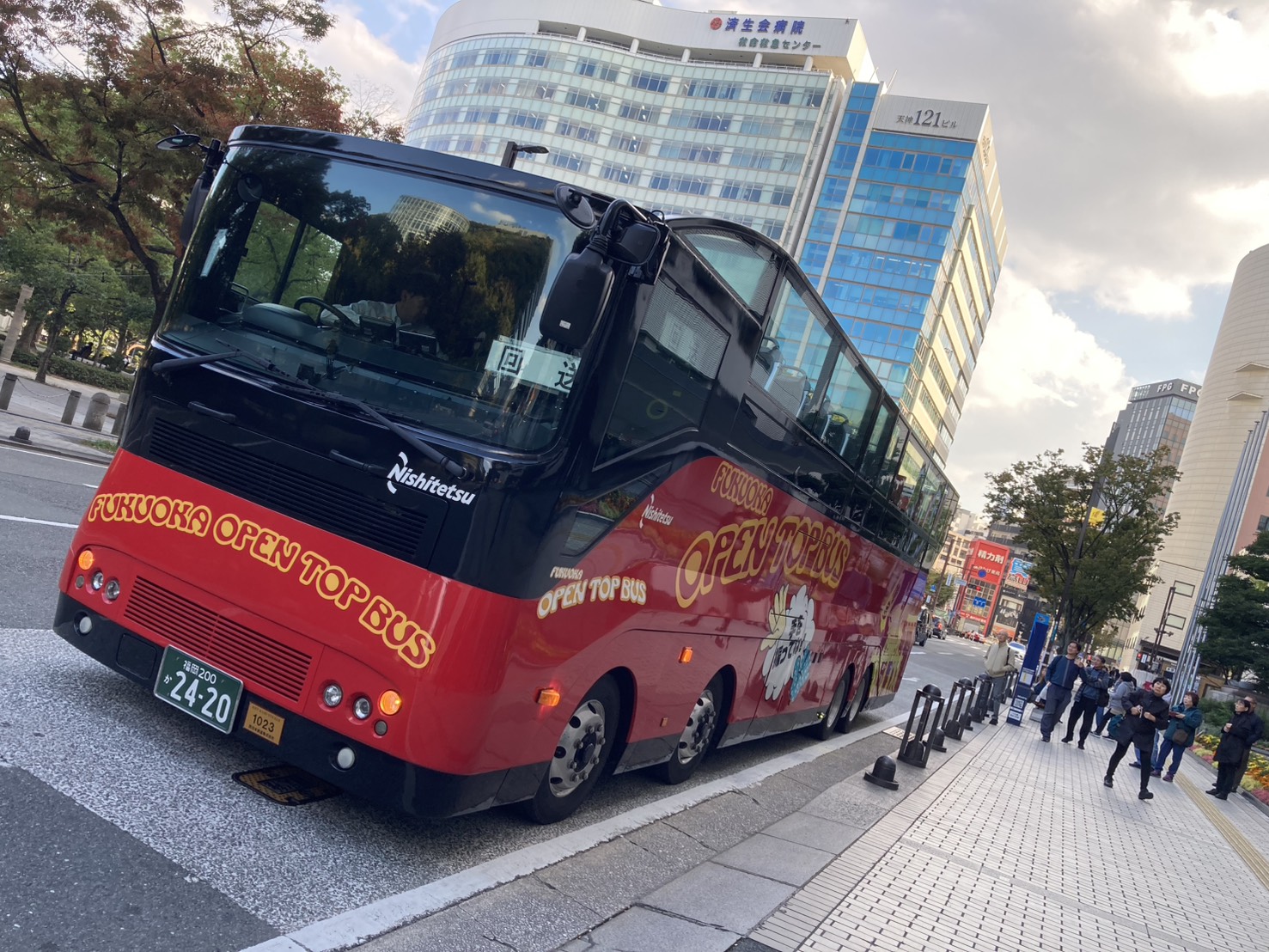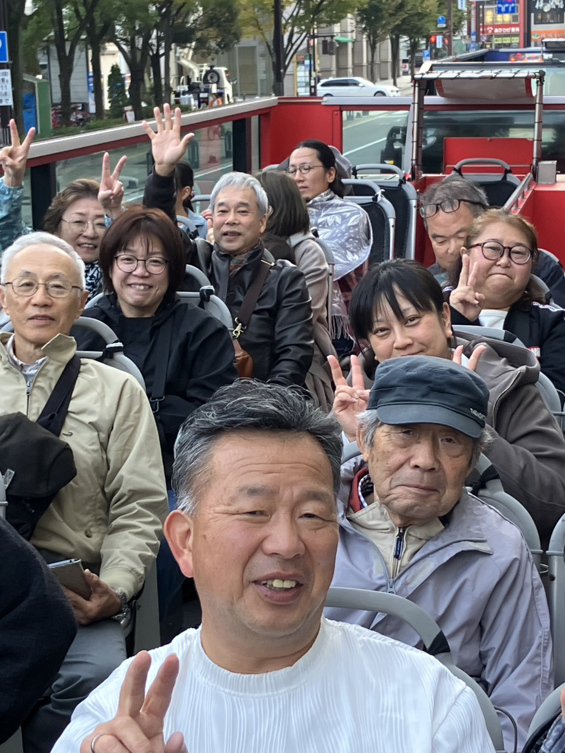 。防災センターでは震度7の地震や火事の際の避難などを体験し、オープントップバスは説明を聞きながら福岡市内を回って、とても楽しく研修ができました。
